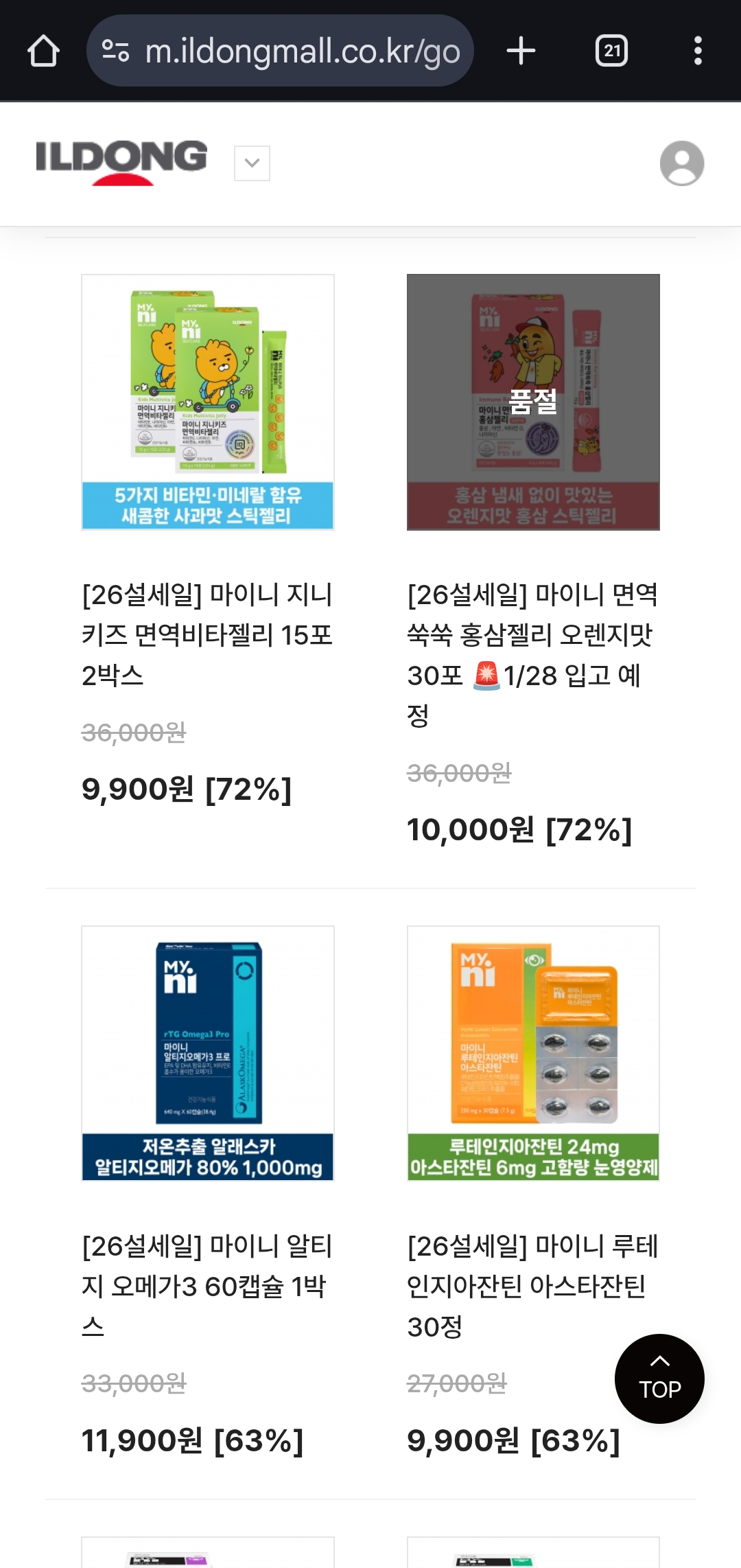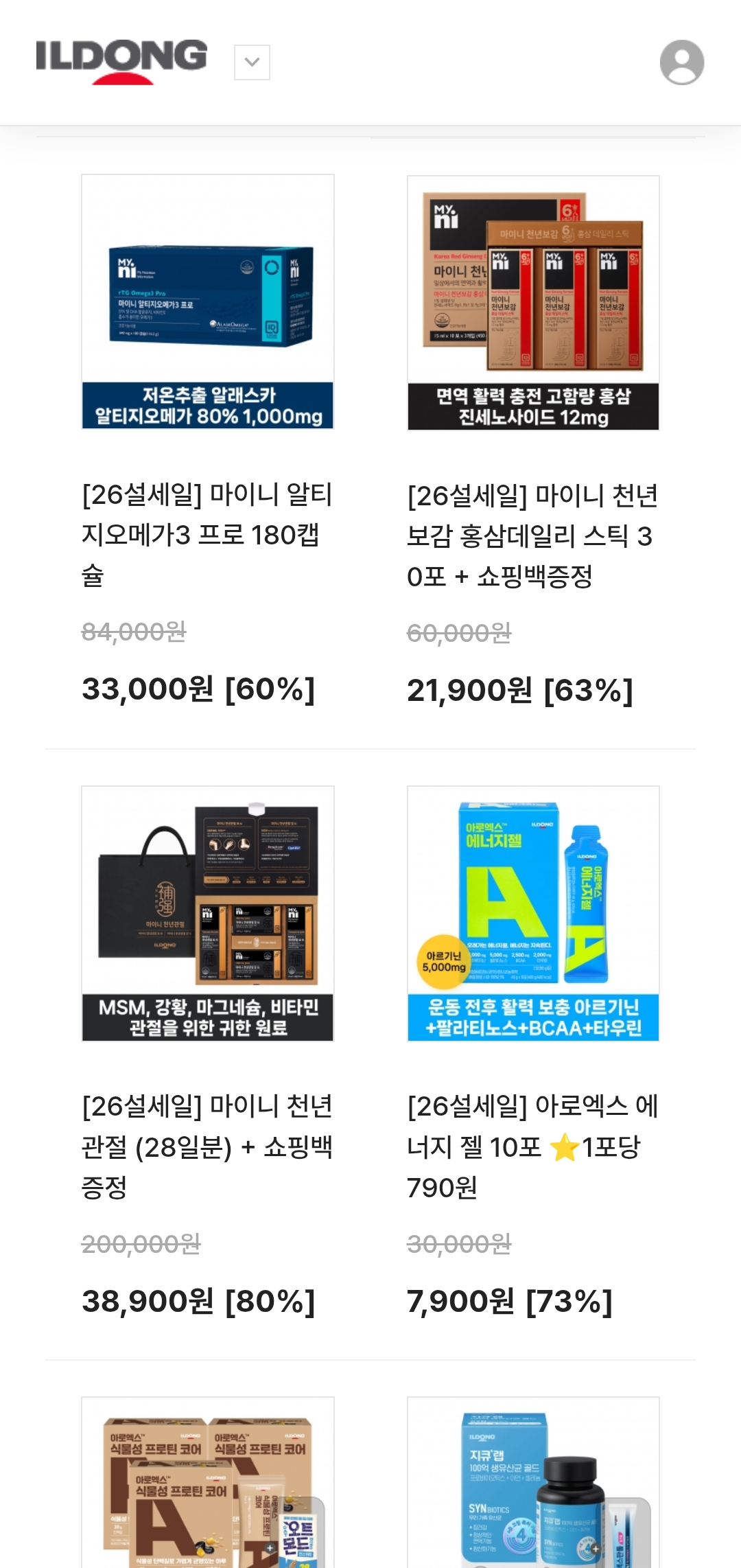 일동제약 건강기능식품 브랜드 마이니 제품들도 할인 폭이 커요.