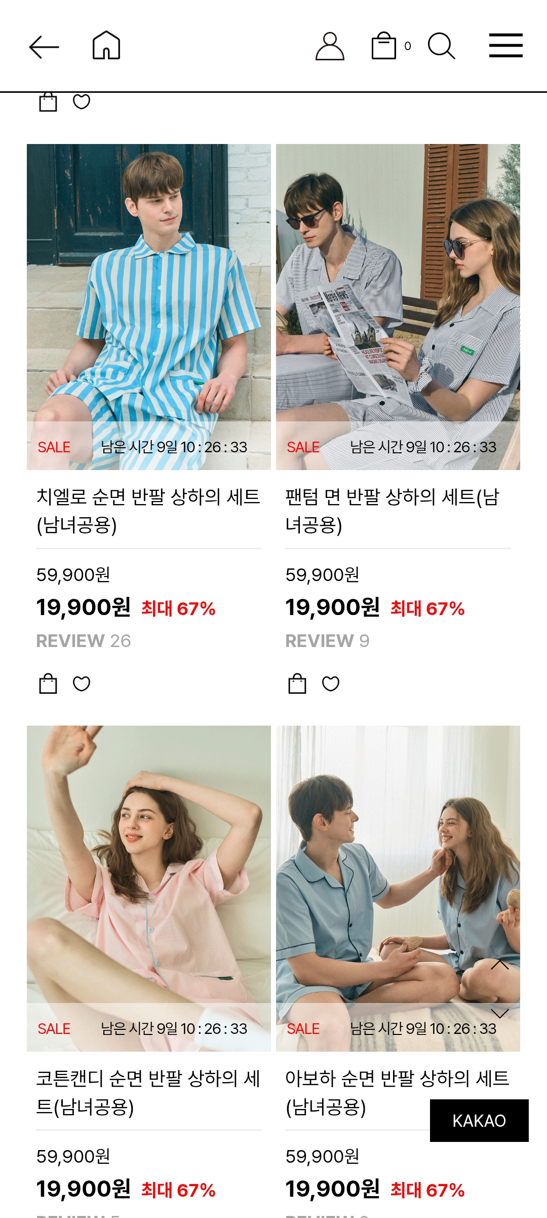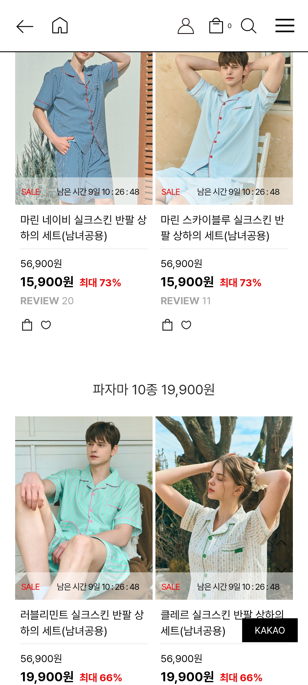 심플 솔리드 반팔 파자마 69,000원 31,050원 55%↓