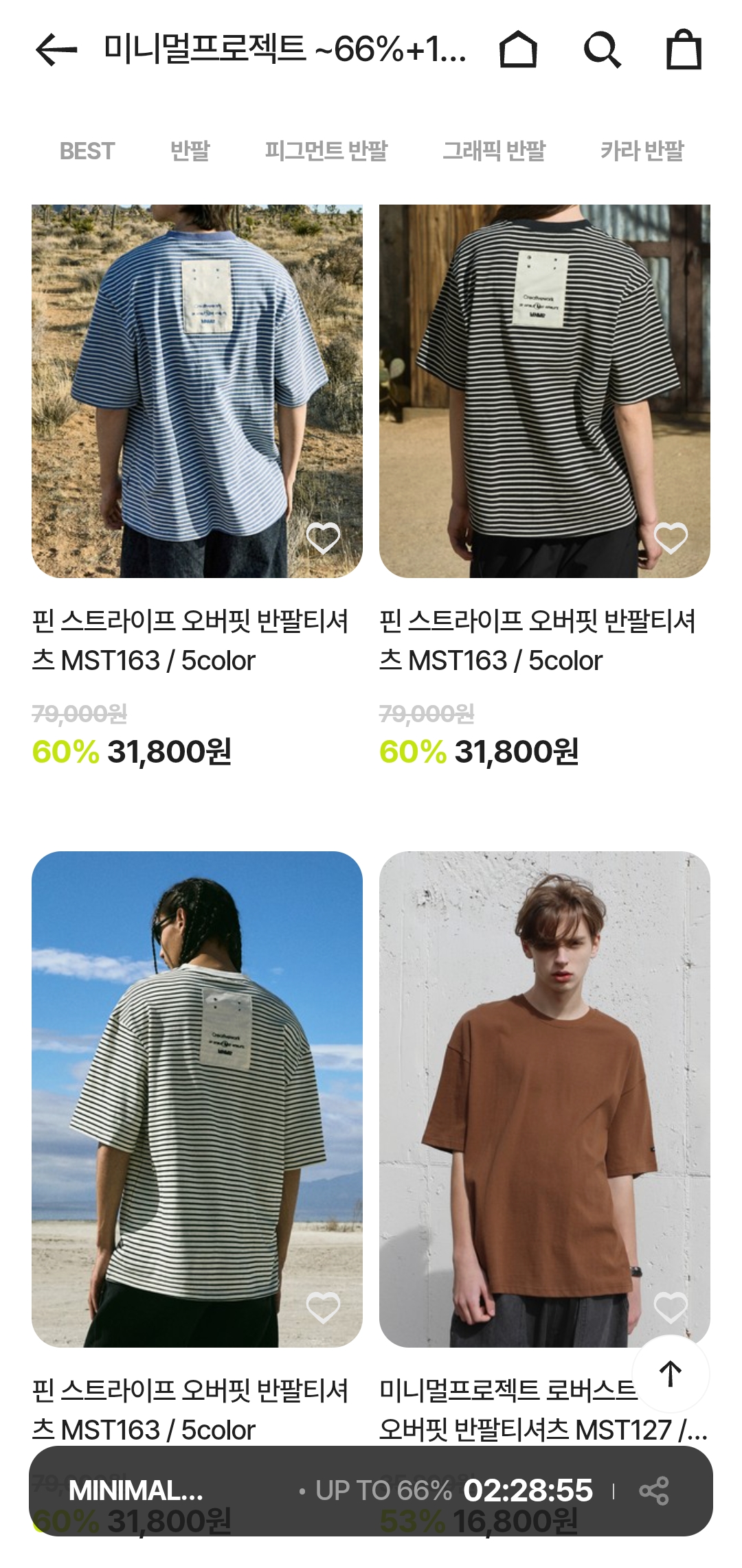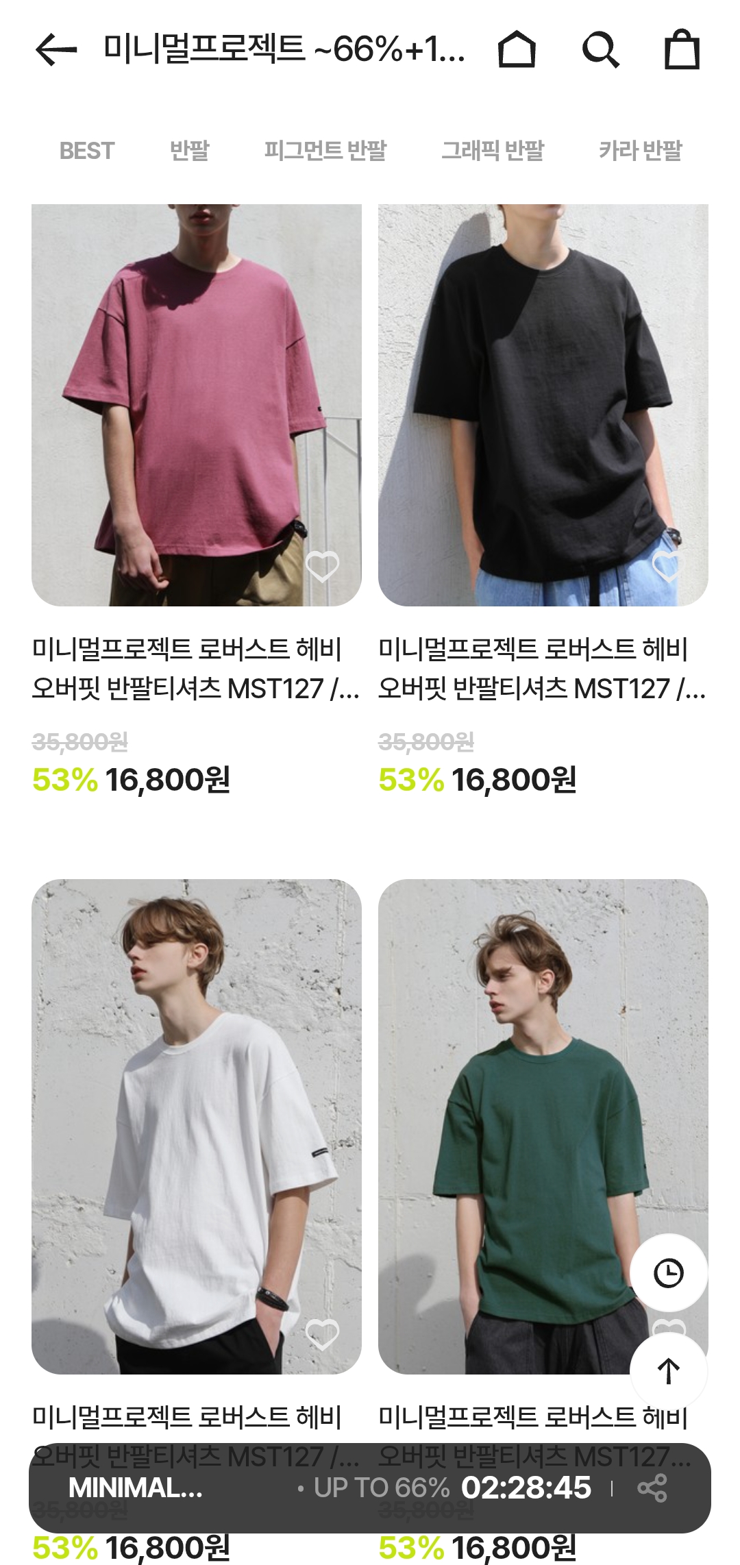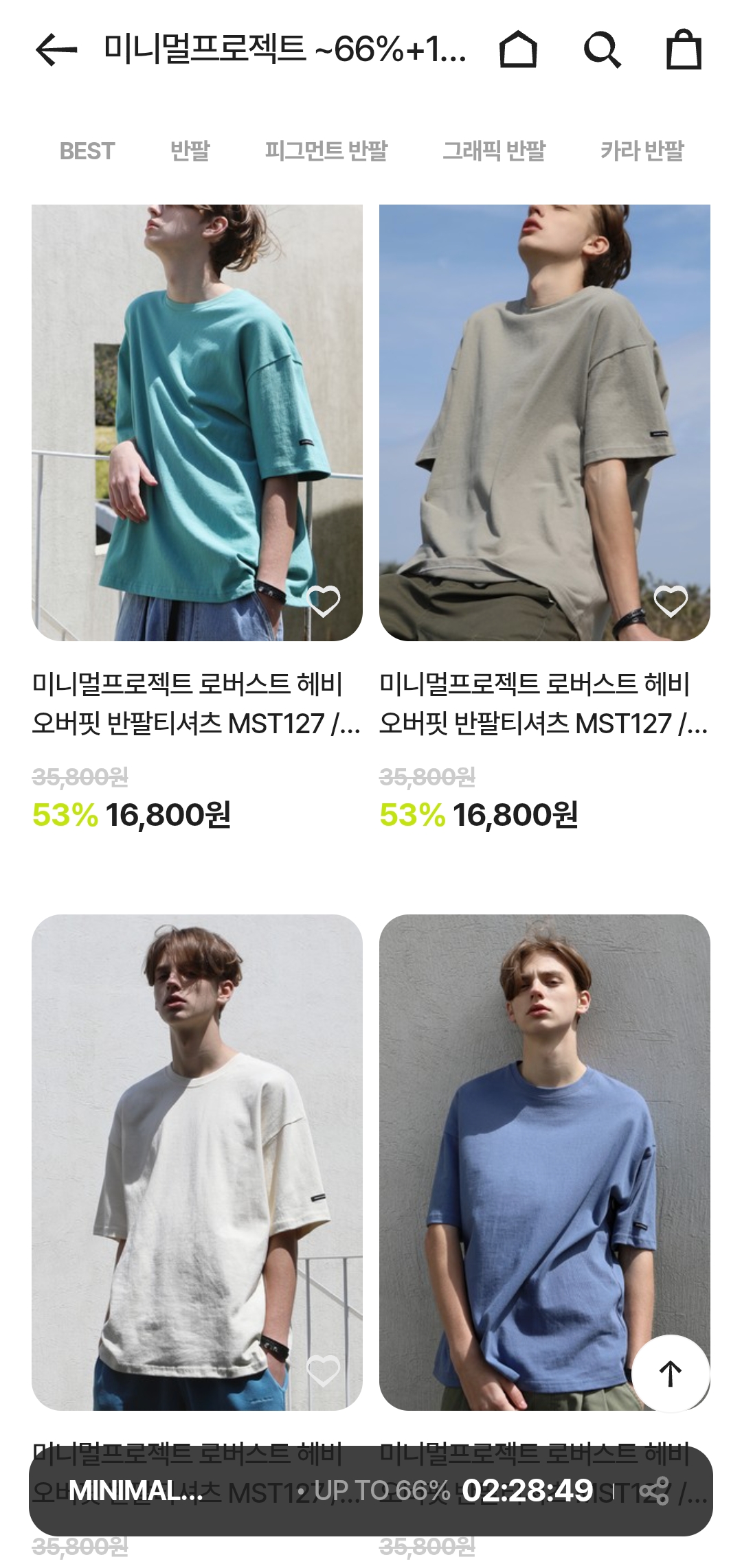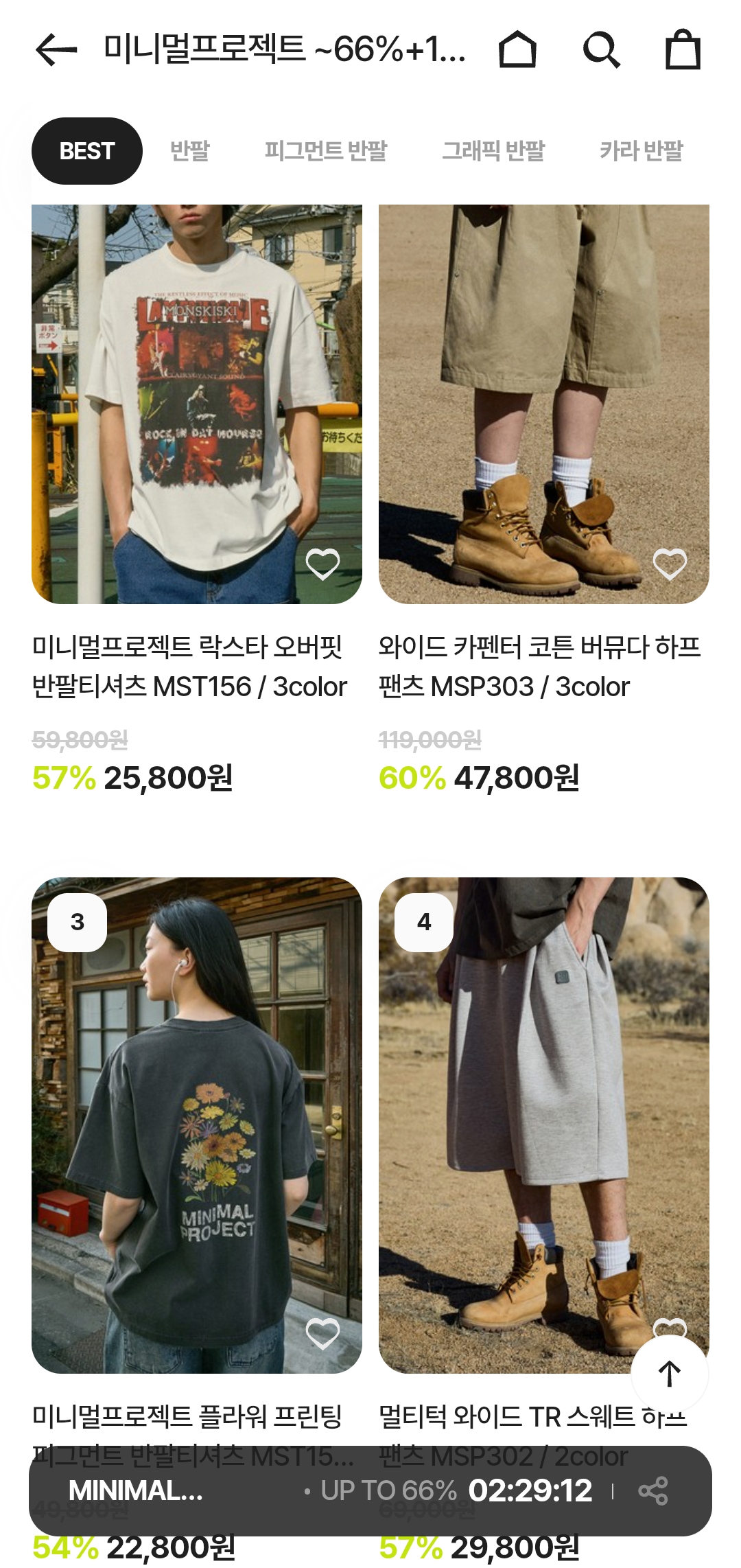 #미니멀프로젝트 #MINIMALPROJECT #타임딜 #일일특가 #66프로할인 #코오롱몰 #그래픽티 #버뮤다반바지 #스트릿패션세일 #여름특가