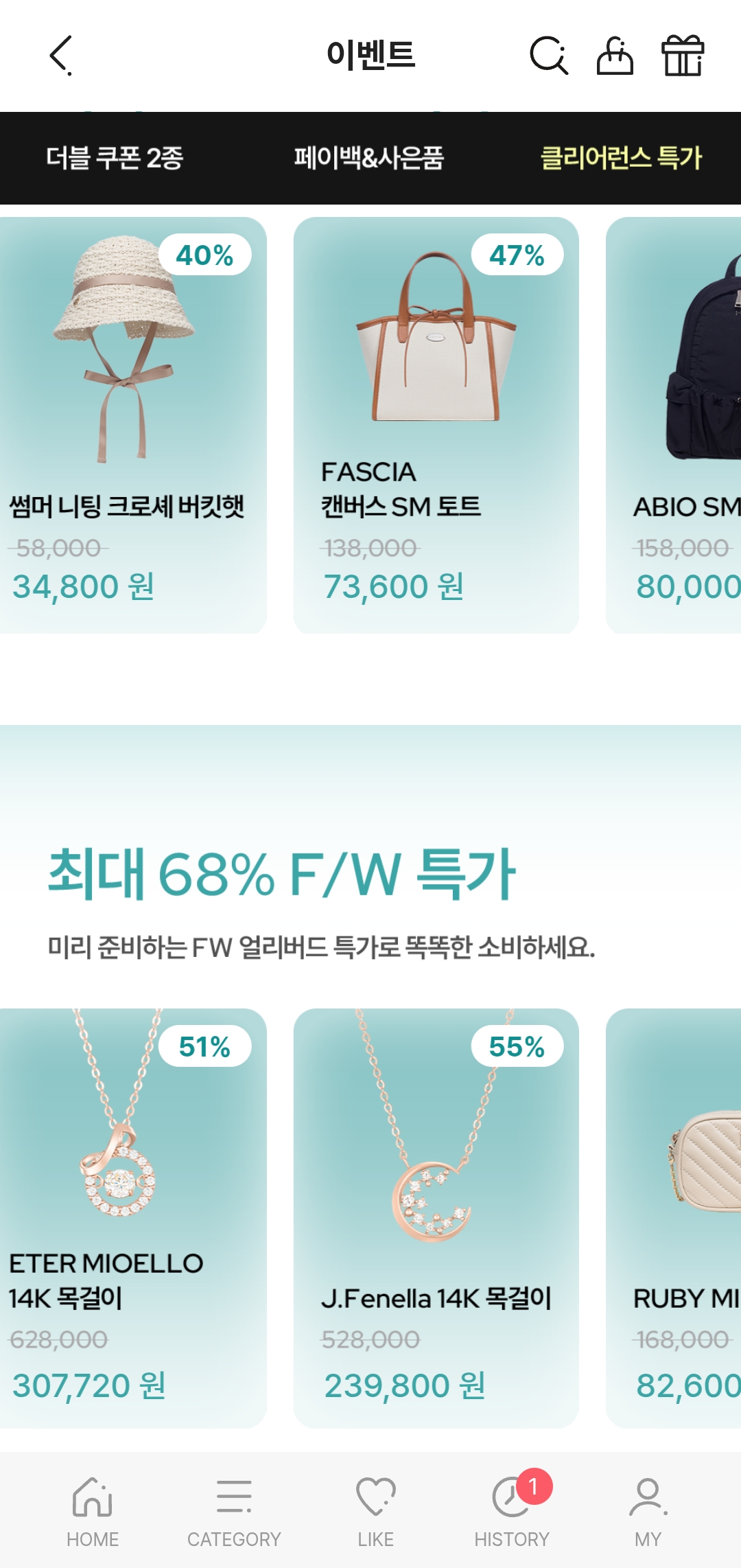 지금 단 한 번, 최대 70% 할인 혜택으로 주얼리, 가방, 시계 등 다양한 아이템을 득템할 수 있는 클리어런스 세일이 진행 중이에요.