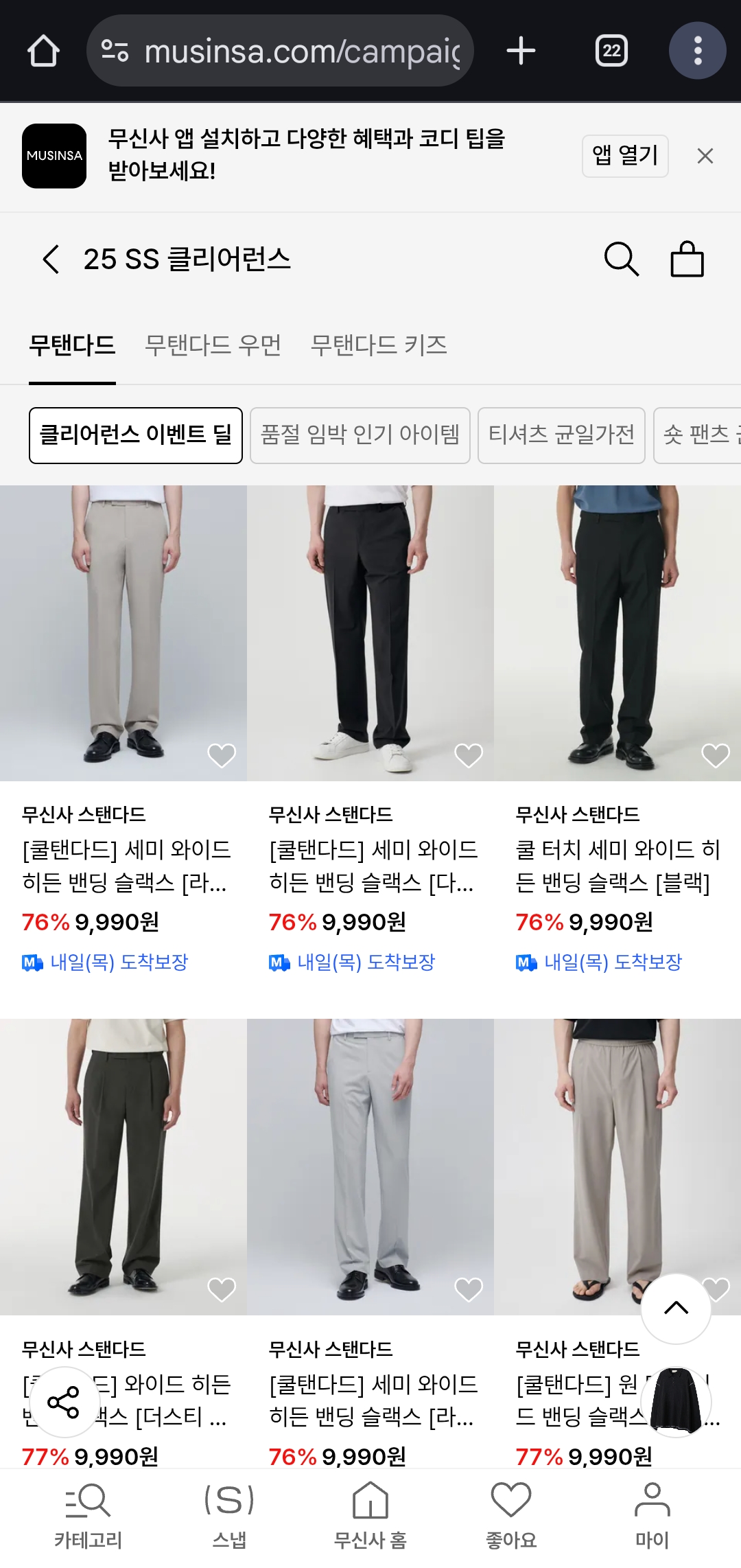 진행처: 무신사 스탠다드 클리어런스 페이지