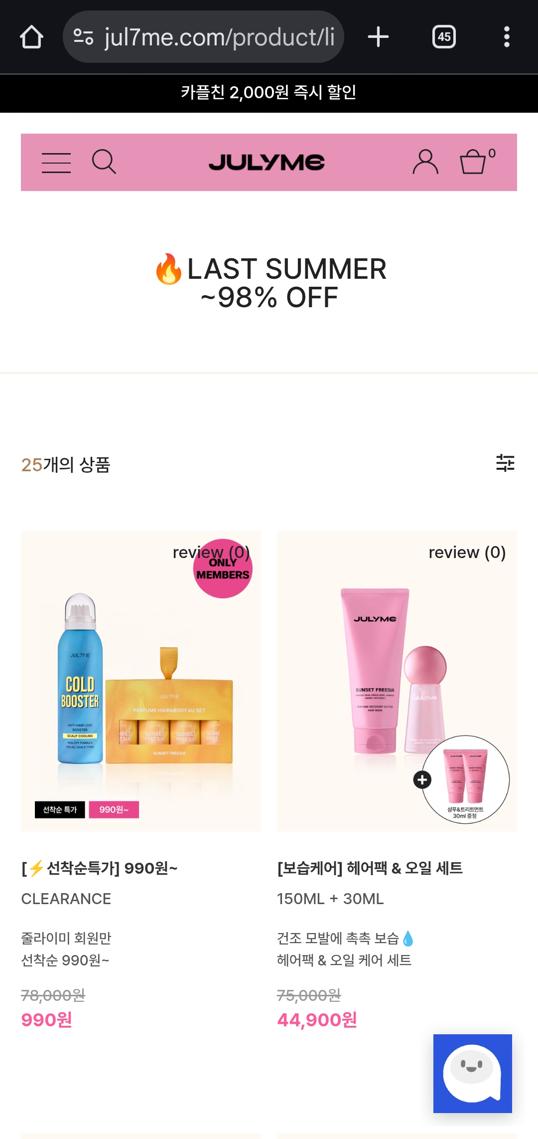 이번 줄라이미 라스썸머 쎄일은 무려 최대 98% 할인으로 진행됩니다.