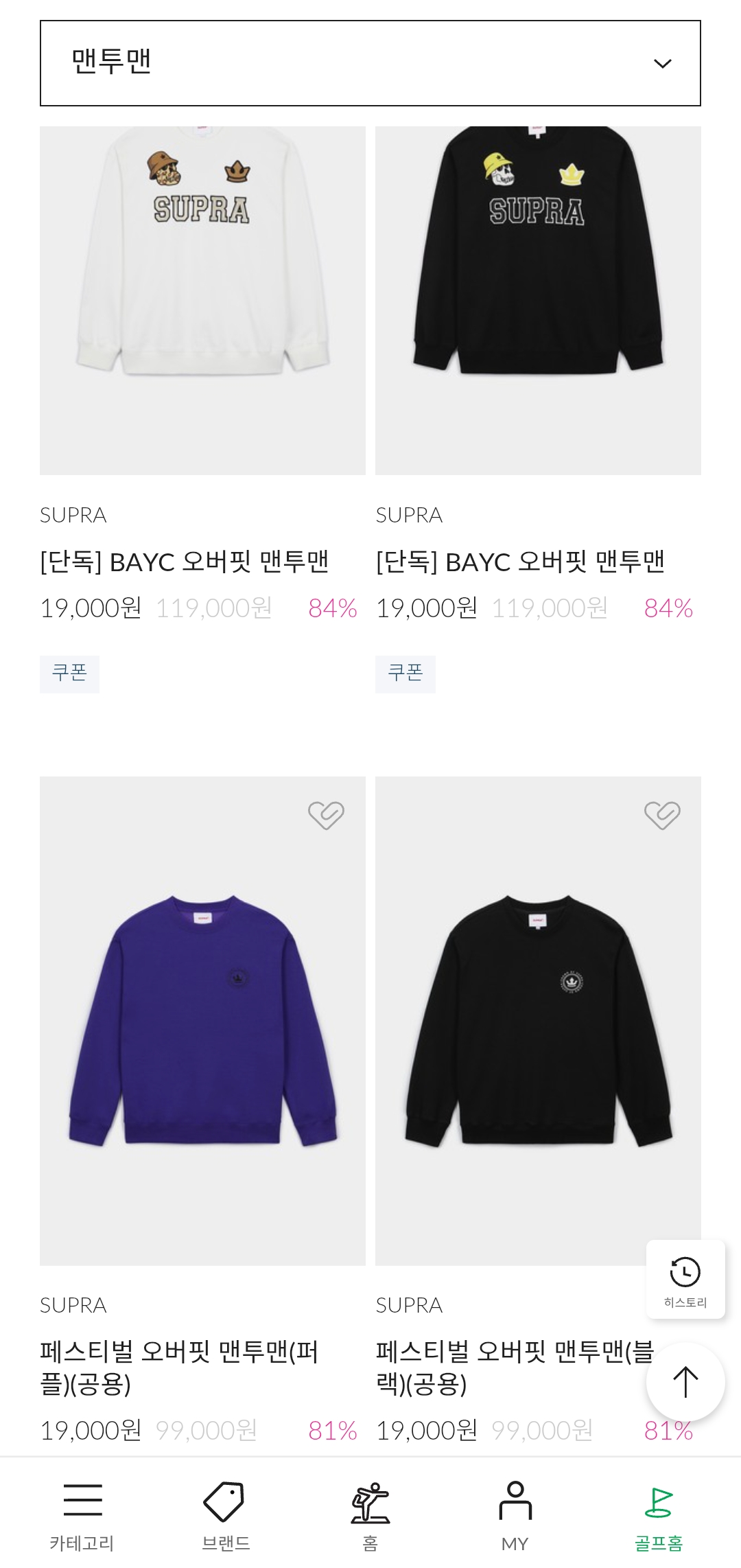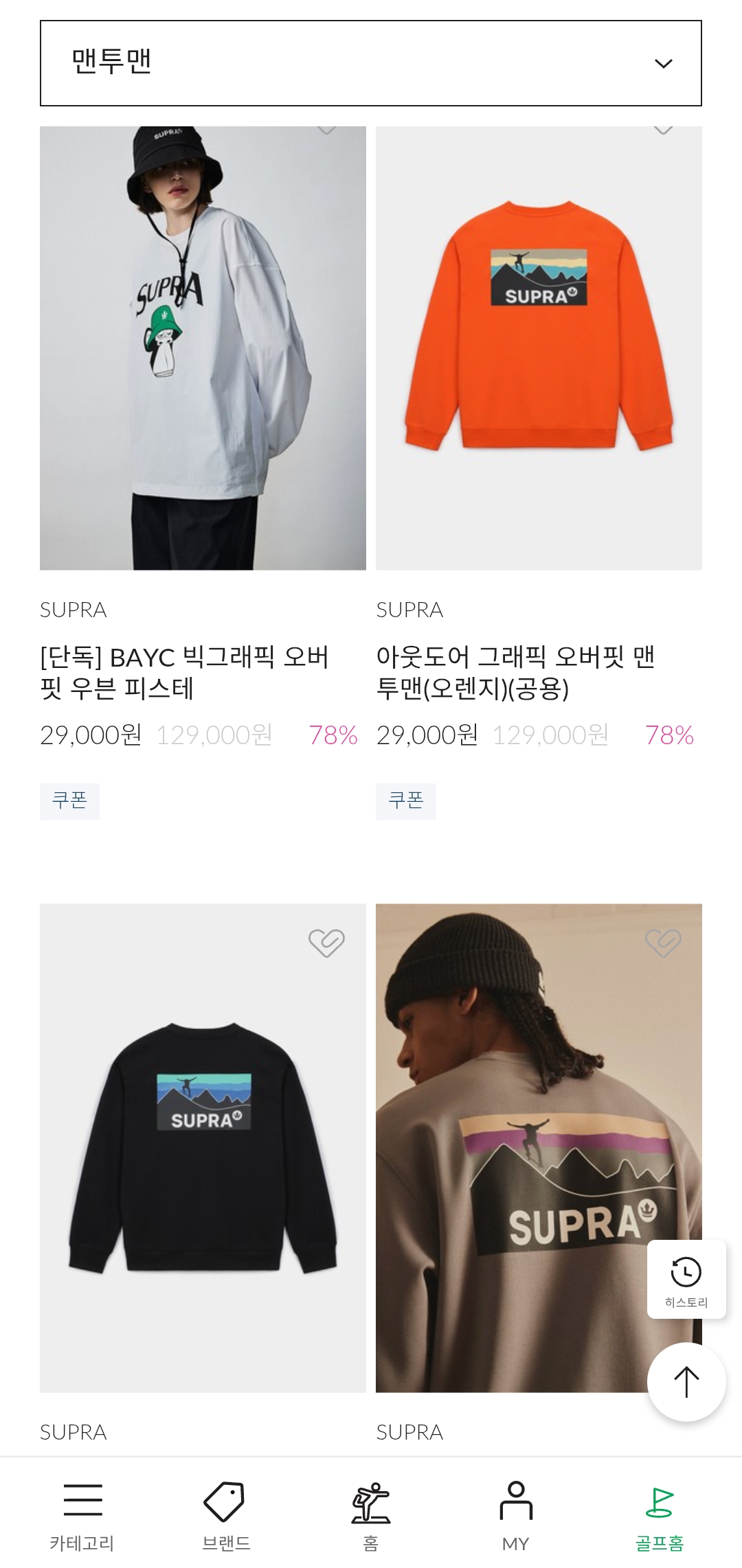 이번 SUPRA 역시즌 세일은 맨투맨, 바람막이, 팬츠 등 인기 아이템을