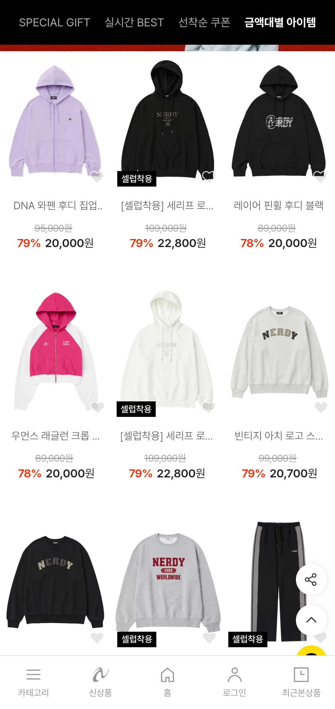 스트릿 무드와 편안한 착용감으로 많은 사랑을 받는 **널디(NERDY)**에서