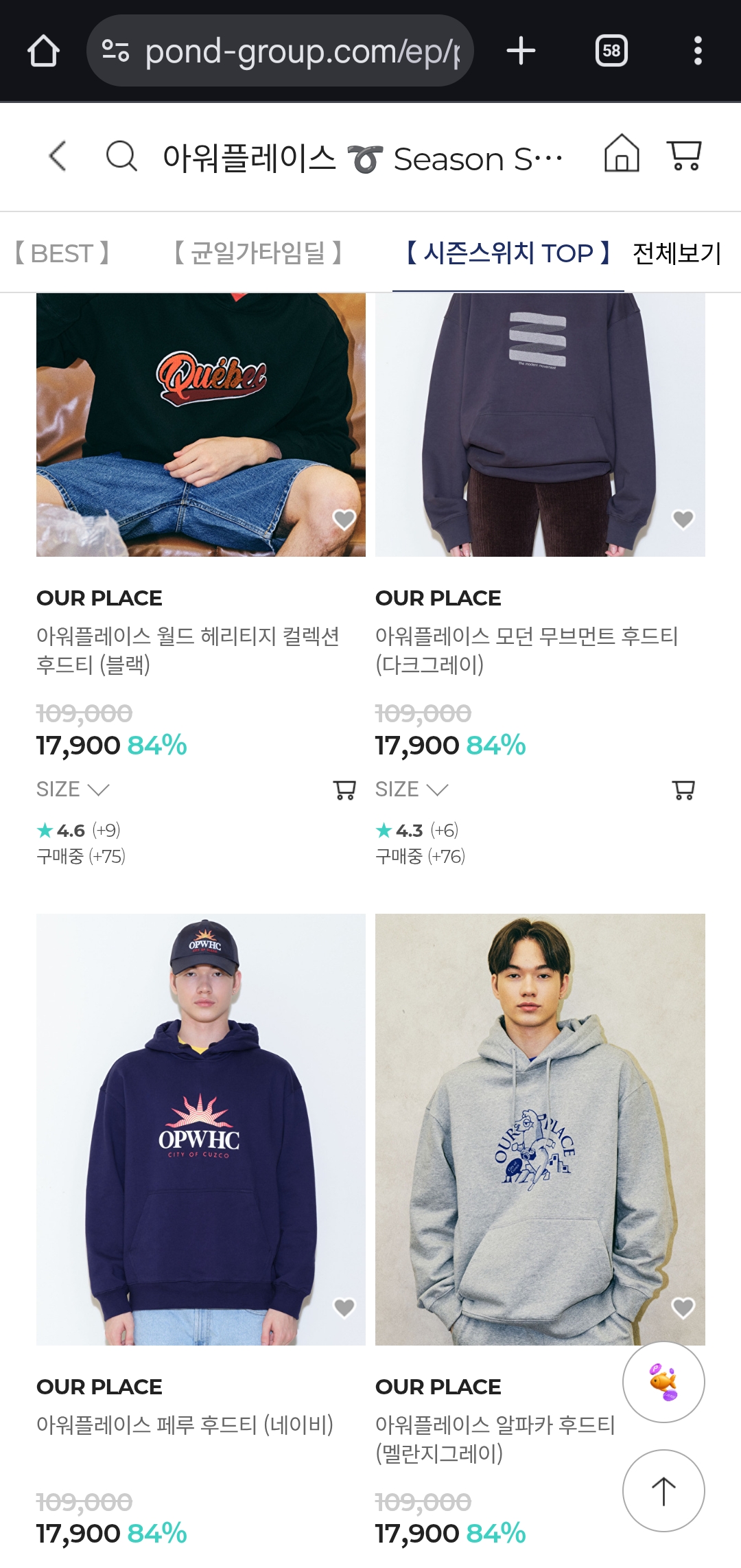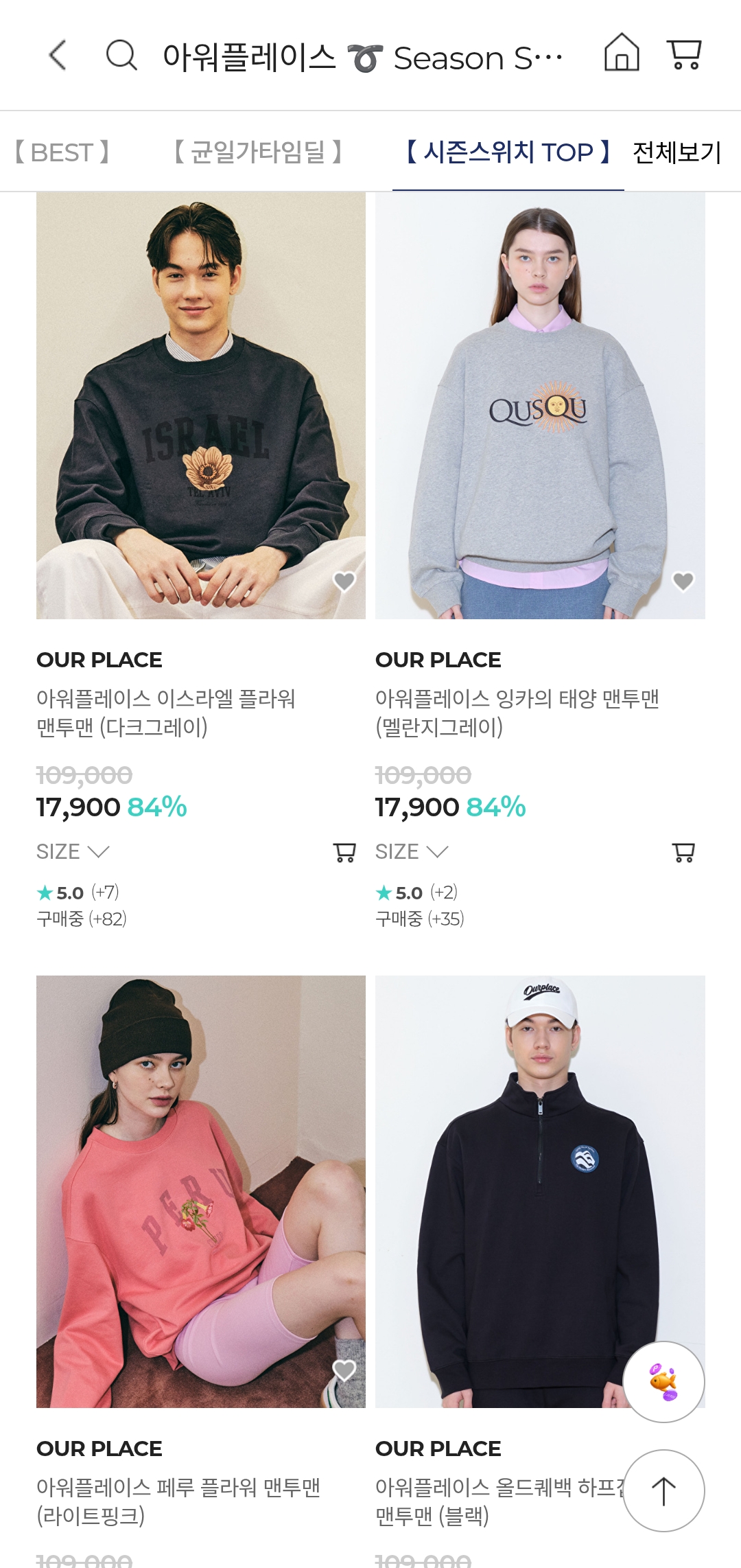 #아워플레이스 #OURPLACE #시즌스위치세일 #의류세일 #최대84%할인 #패션세일 #데일리룩 #간절기코디 #여성의류 #남성의류