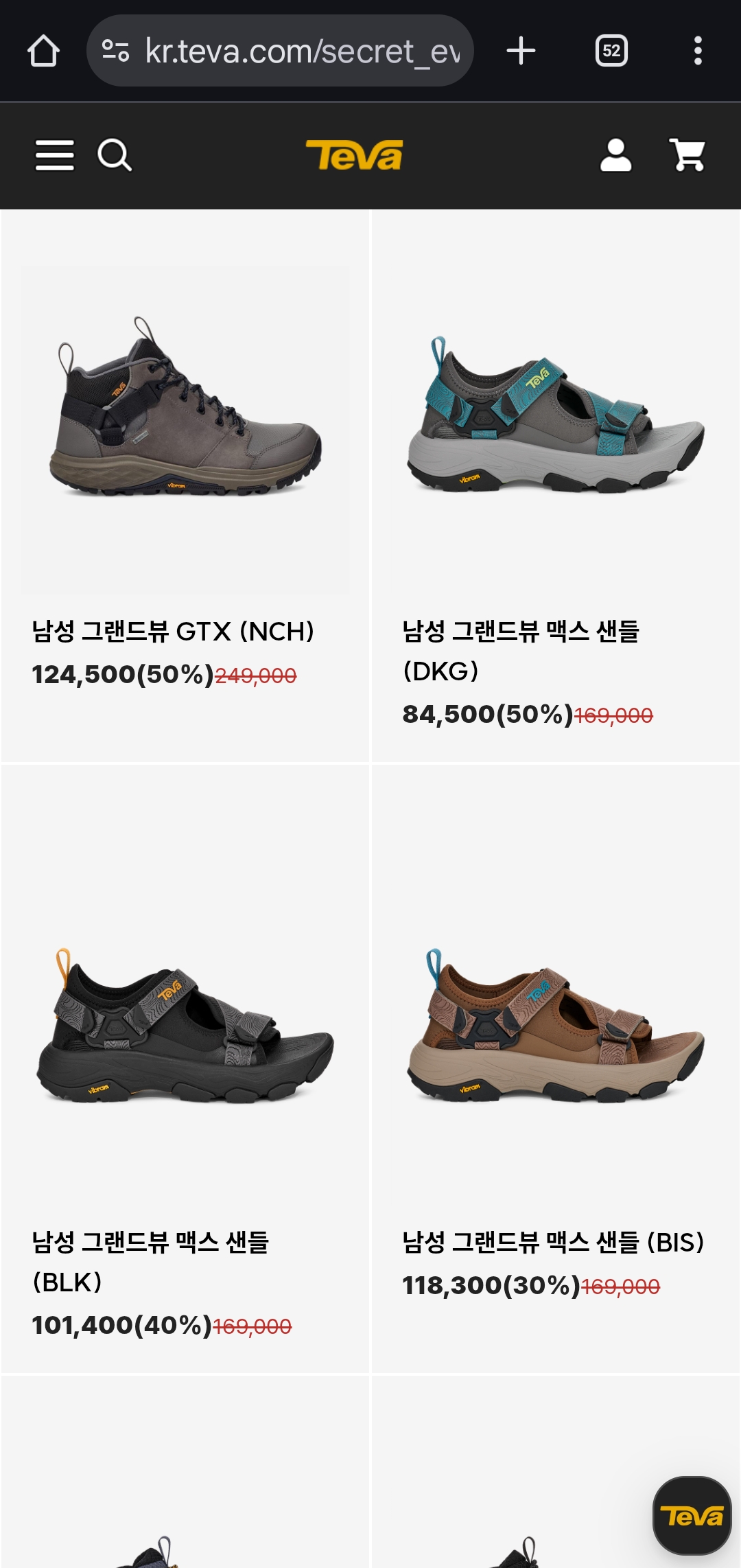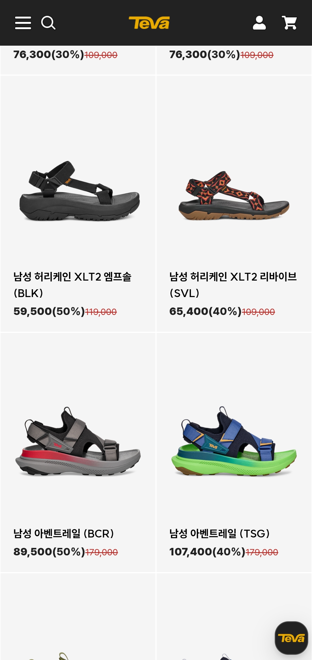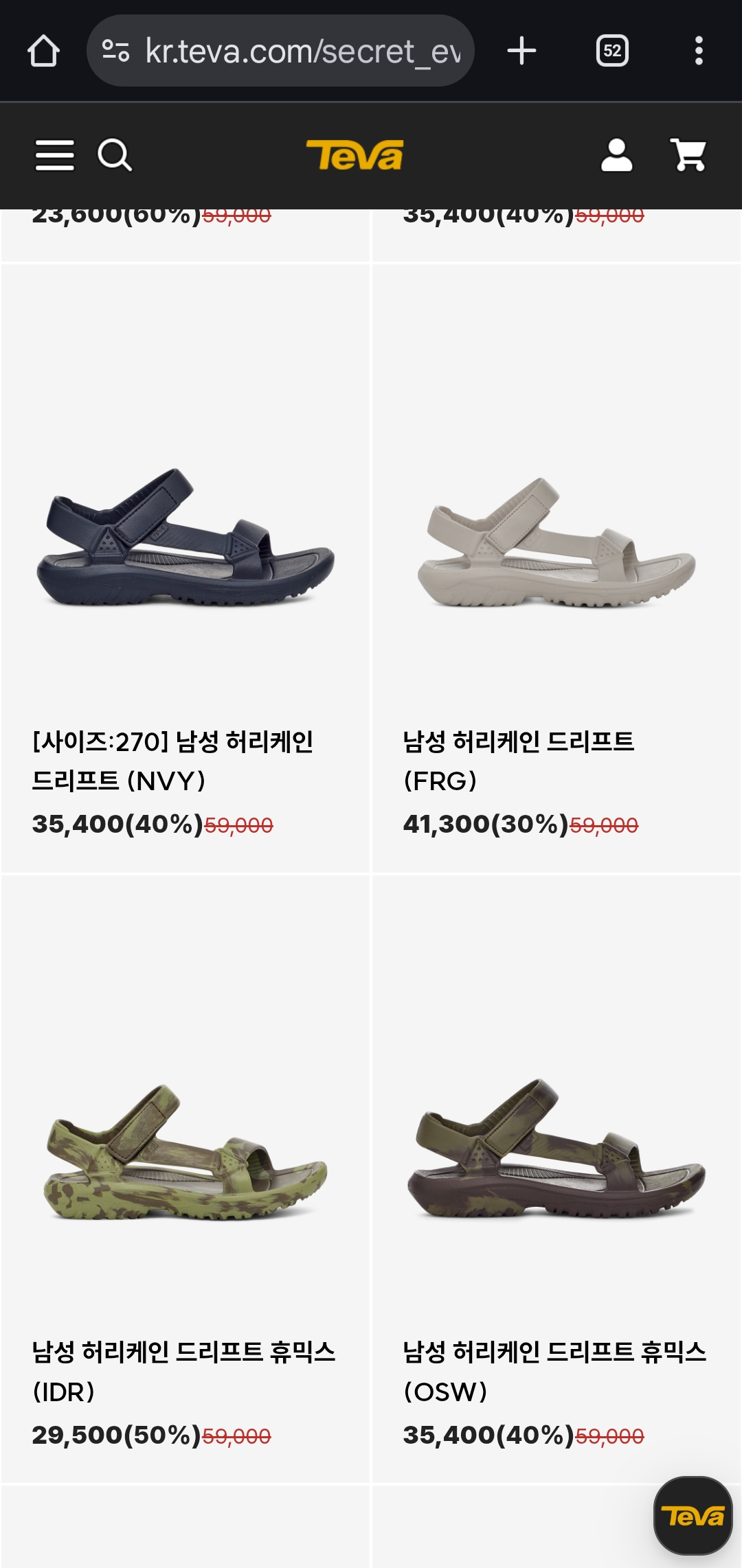 대상 제품 : 샌들, 슬리퍼, 아웃도어 슈즈 등 다양한 테바 인기 라인업