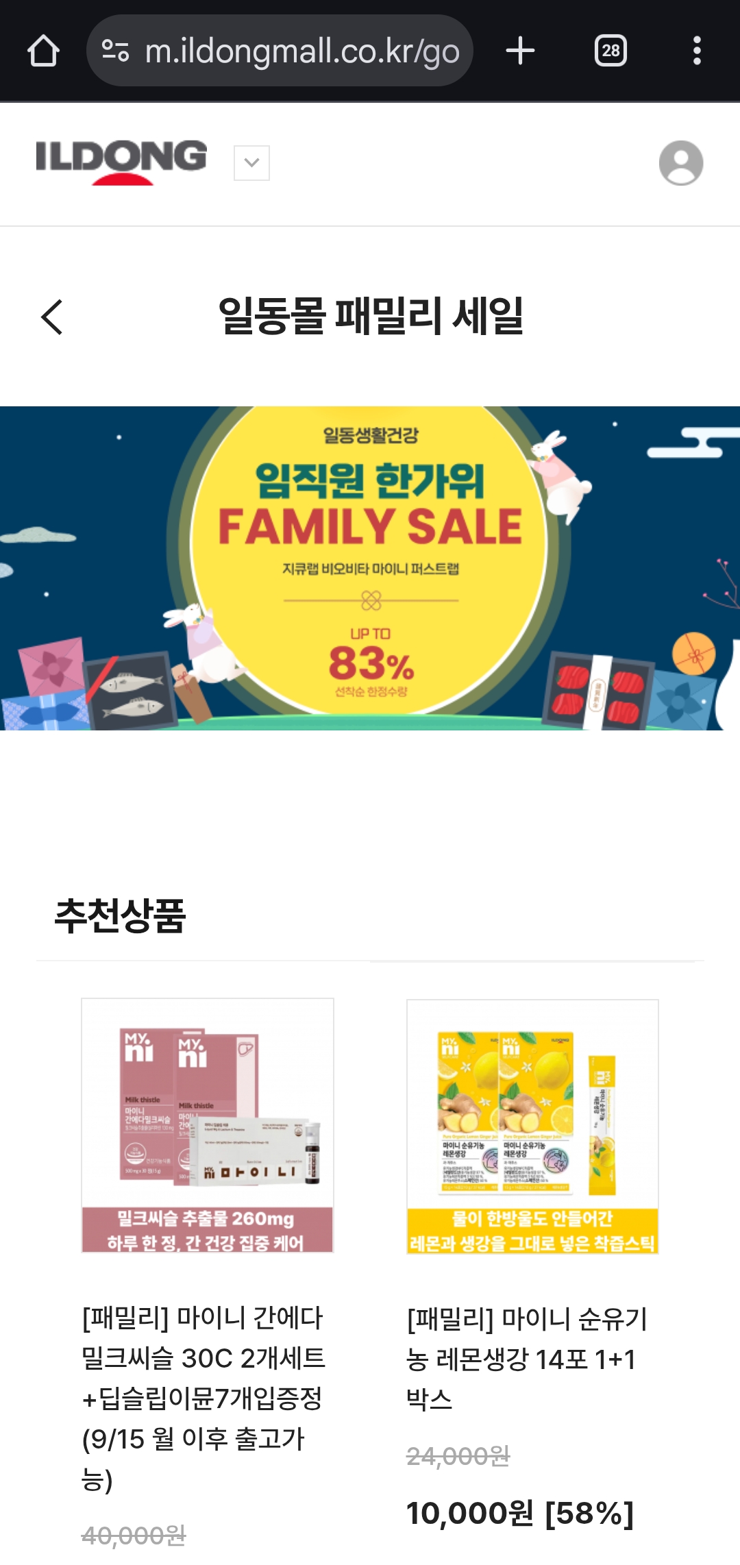 일동제약 공식몰, 일동몰에서 최대 83% 할인하는 패밀리세일이 진행 중입니다!