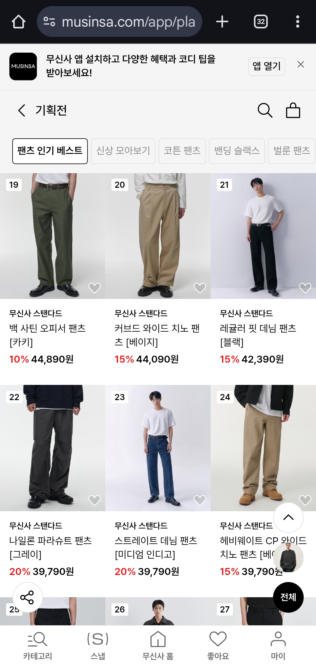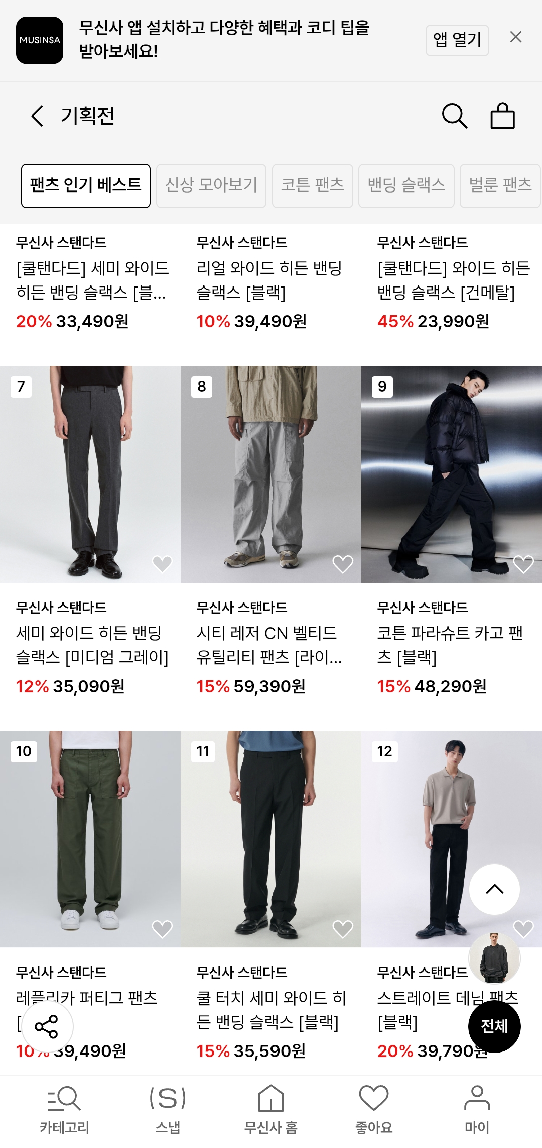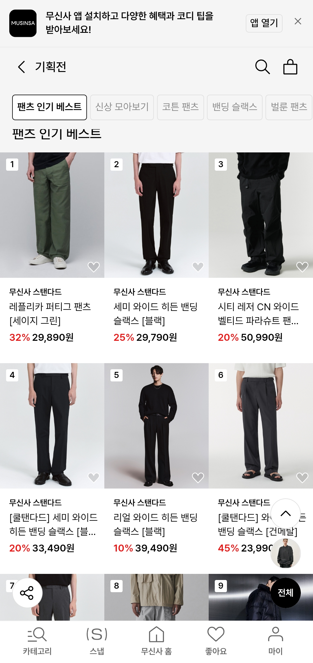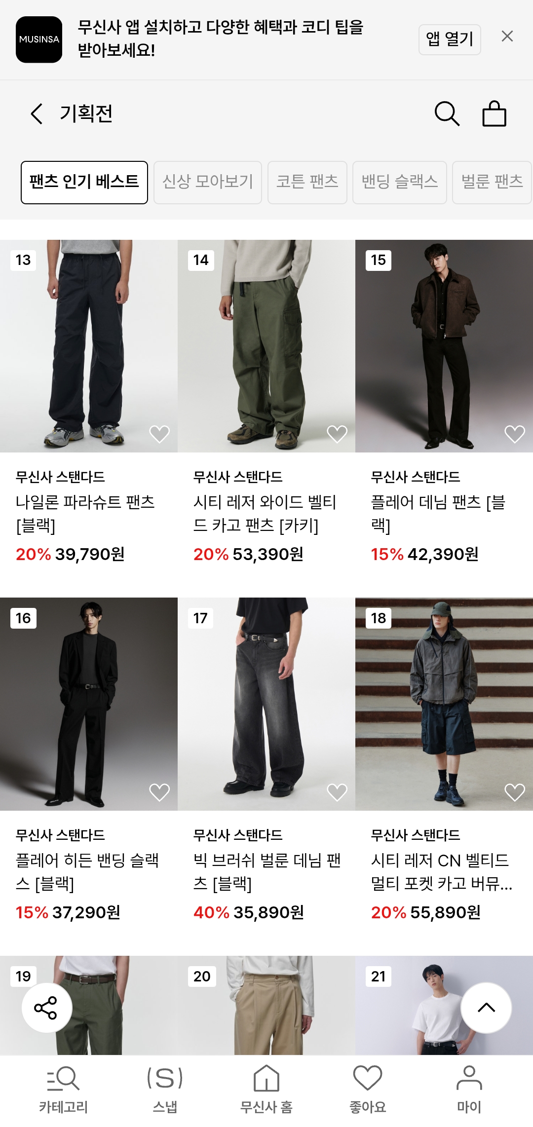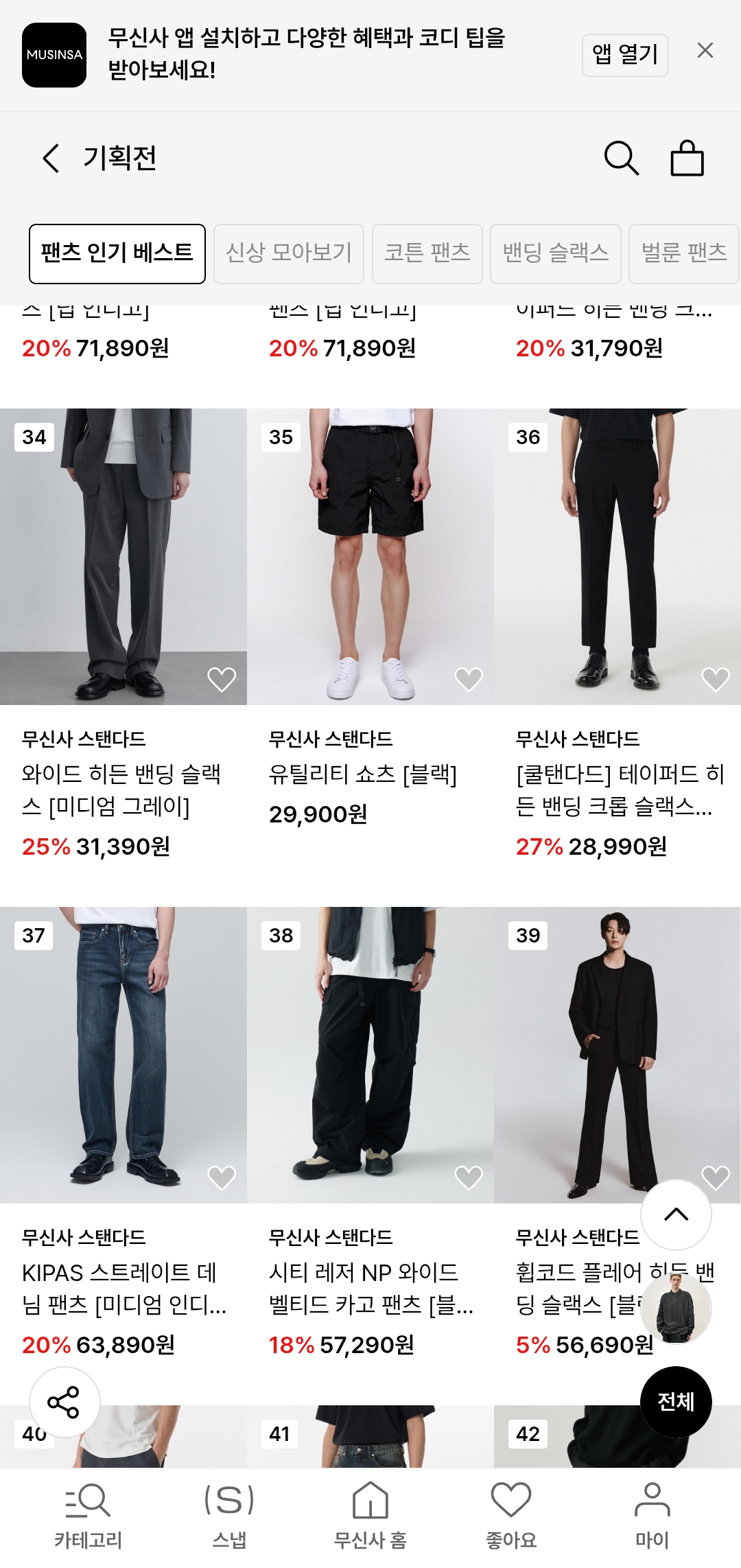 할인전ㅣ무탠다드 인기 팬츠 모아보기-기획전(SHOPPING TOPIC) | 무신사