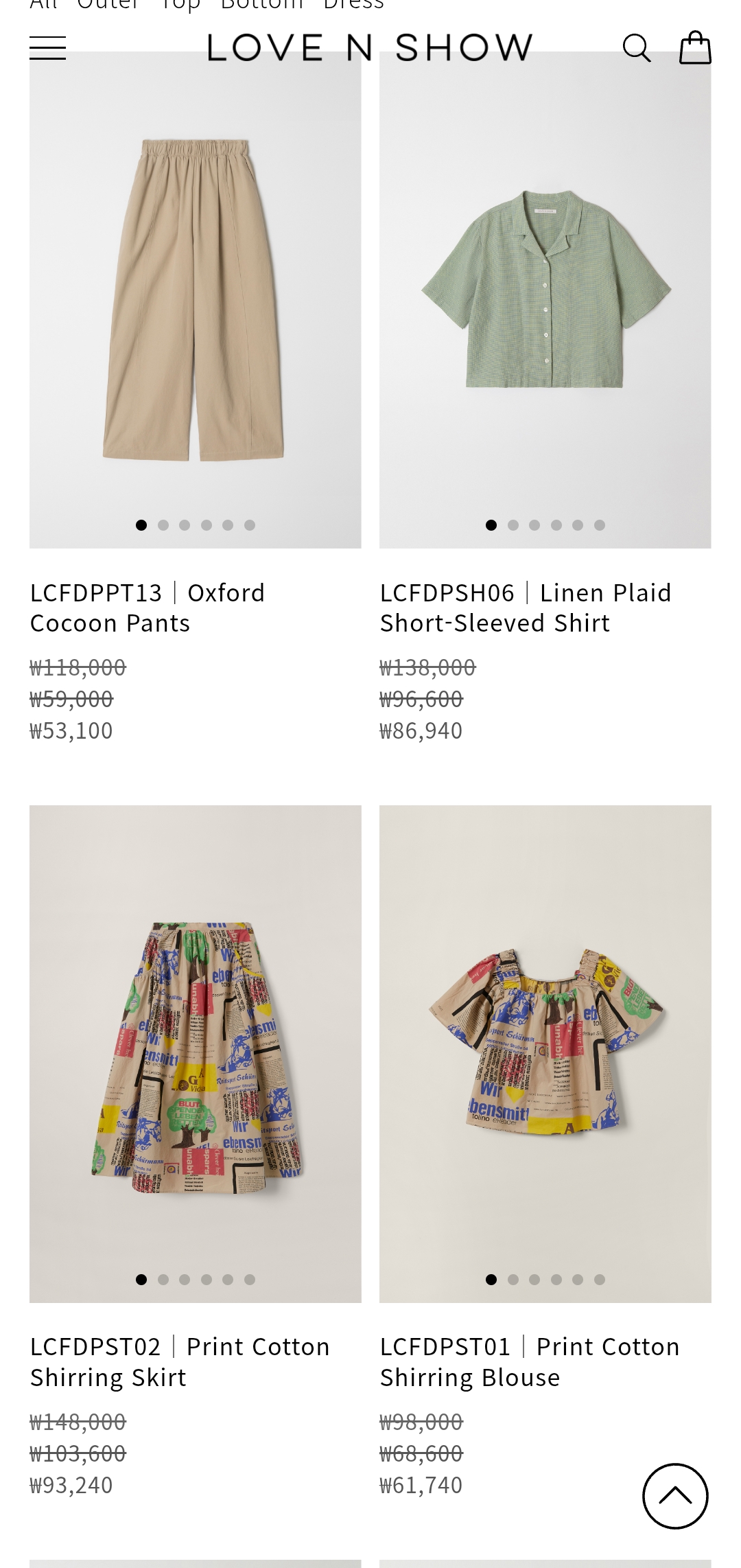 진행 플랫폼 러브앤쇼 공식몰 아울렛 카테고리