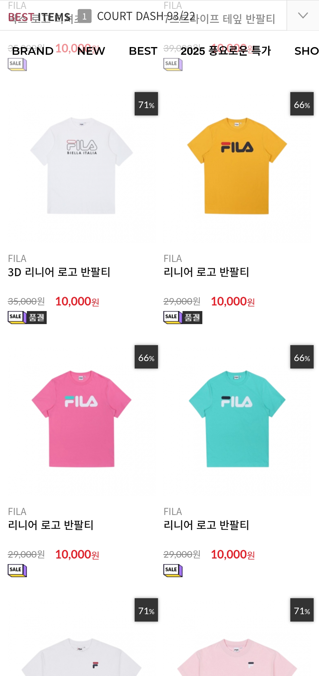트렌디한 휠라(FILA) 의류를 합리적인 가격에 장만할 기회!