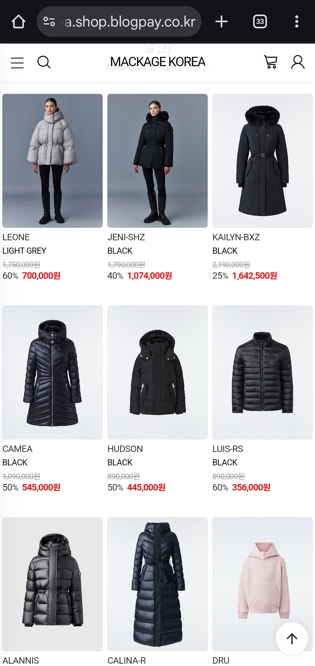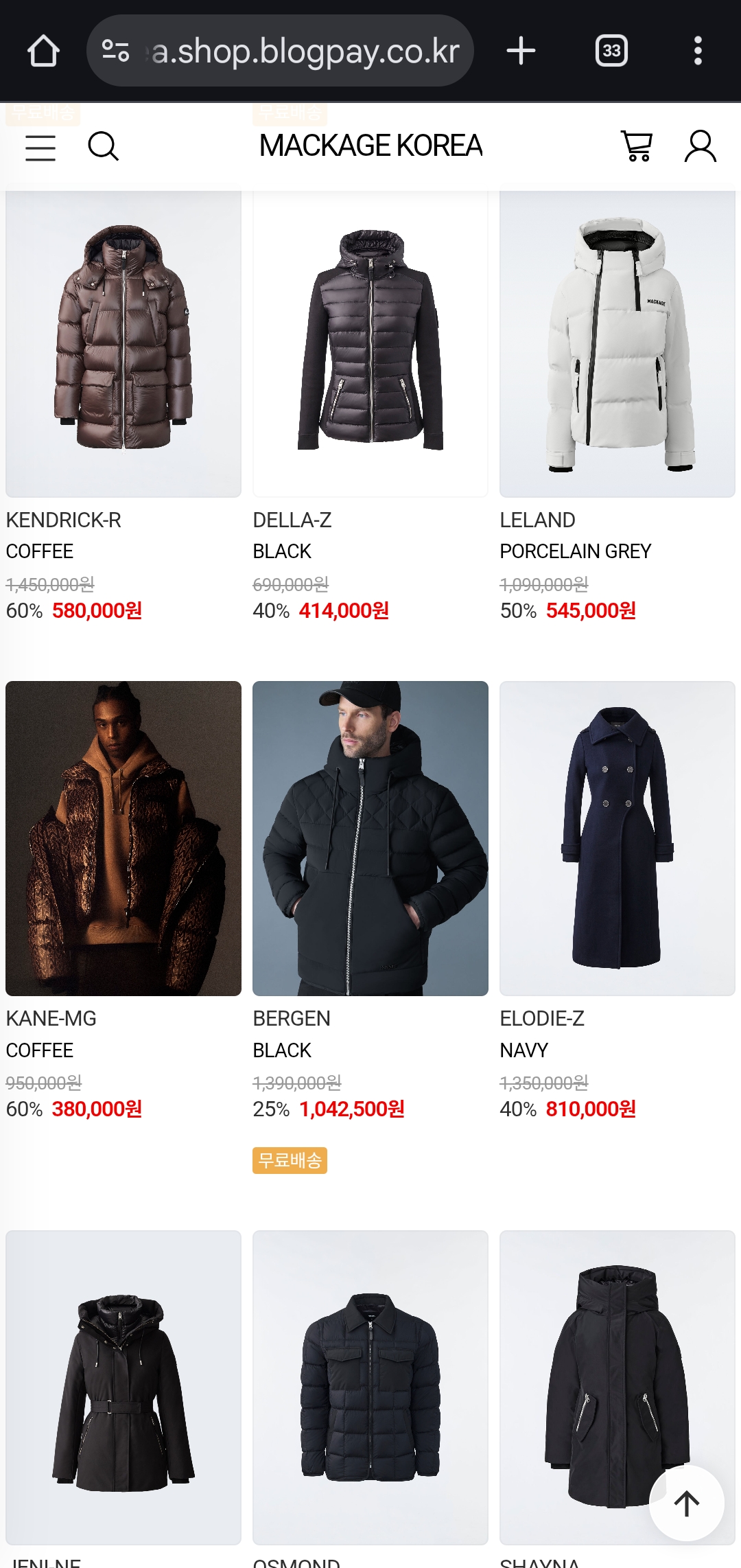 다가오는 겨울, 감각적인 디자인과 뛰어난 보온성을 동시에 갖춘 맥케이지(Mackage) 패딩을 합리적인 가격에 만나보세요.