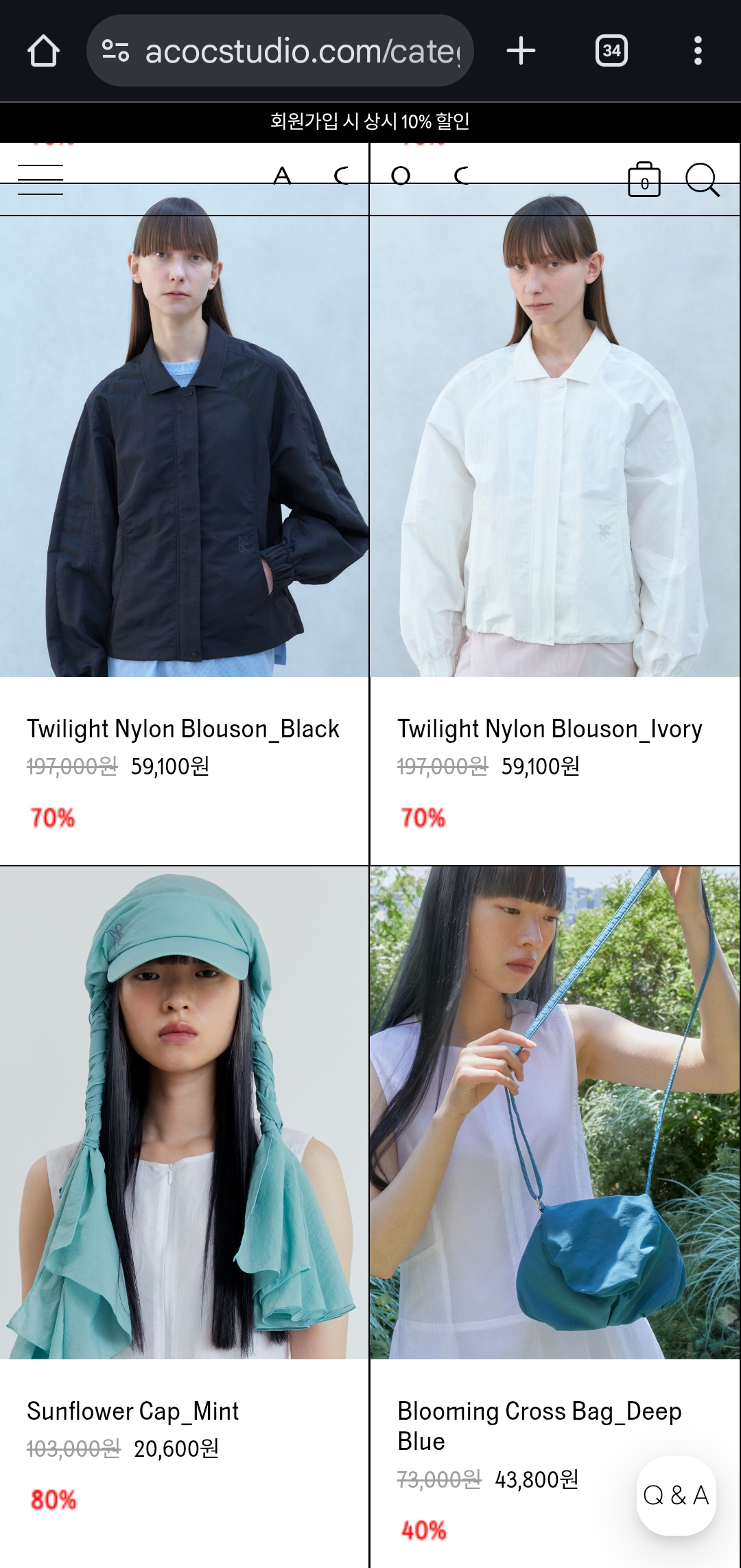 1. 입장코드 acocfamily 입력 후 접속해야 세일 페이지 확인 가능