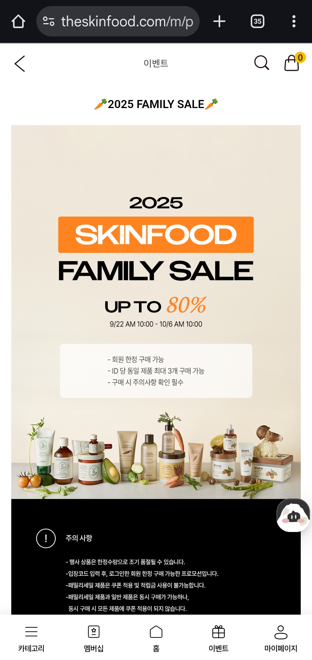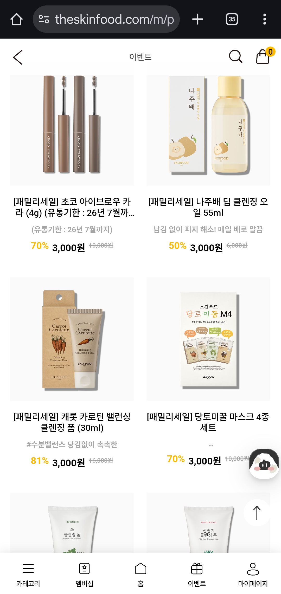 행사명 : 스킨푸드 패밀리세일