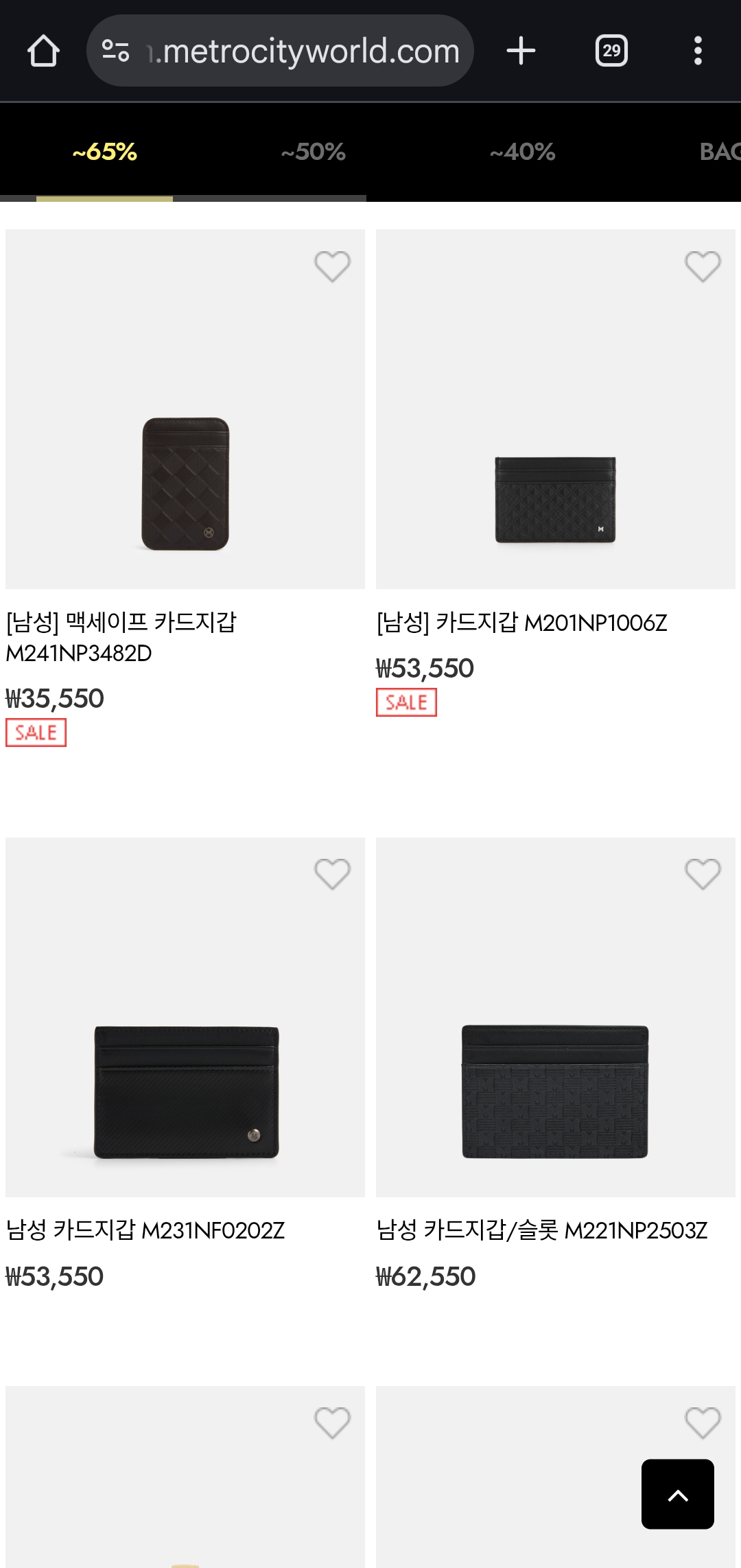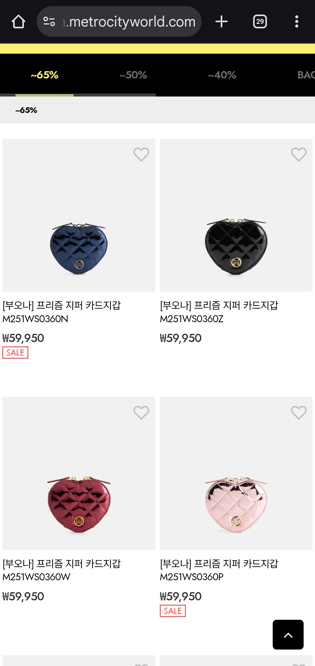 할인 혜택: 악세사리, 지갑, 가방 등 전품목 최대 65% 할인