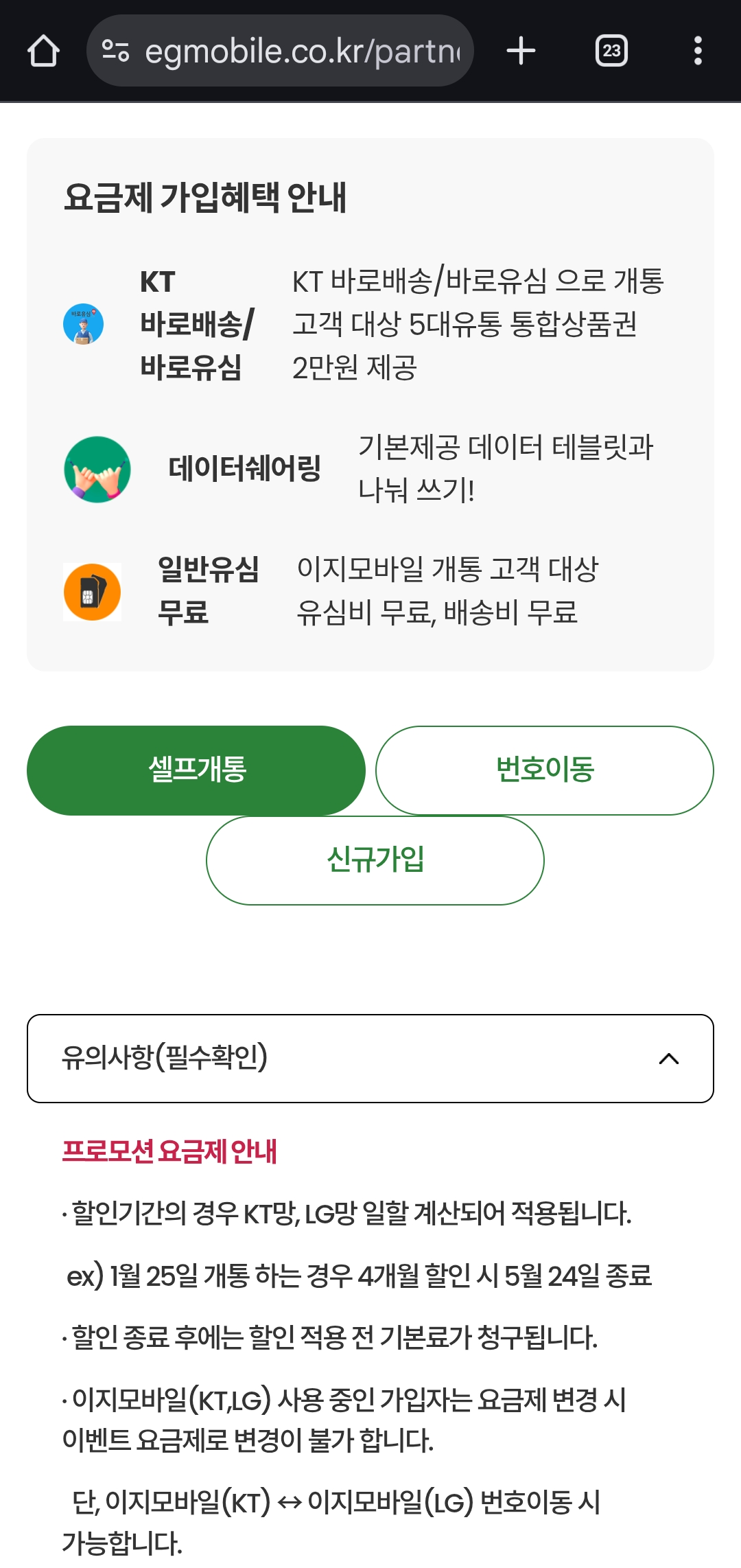 신규가입, 번호이동, 셀프개통 모두 가능