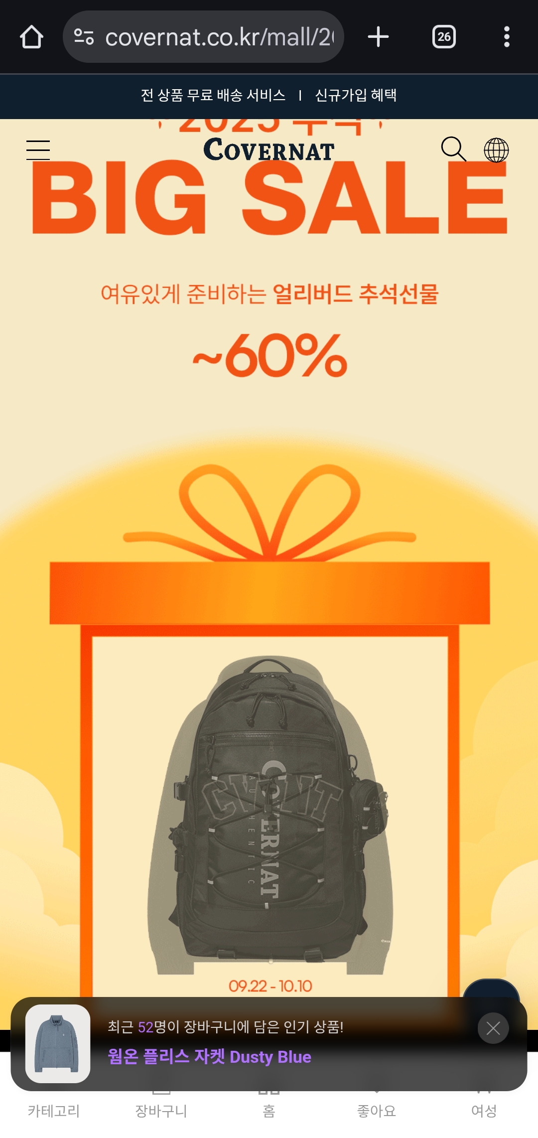 커버낫 추석맞이 9월 25일부터 3일간 전용 25% 쿠폰