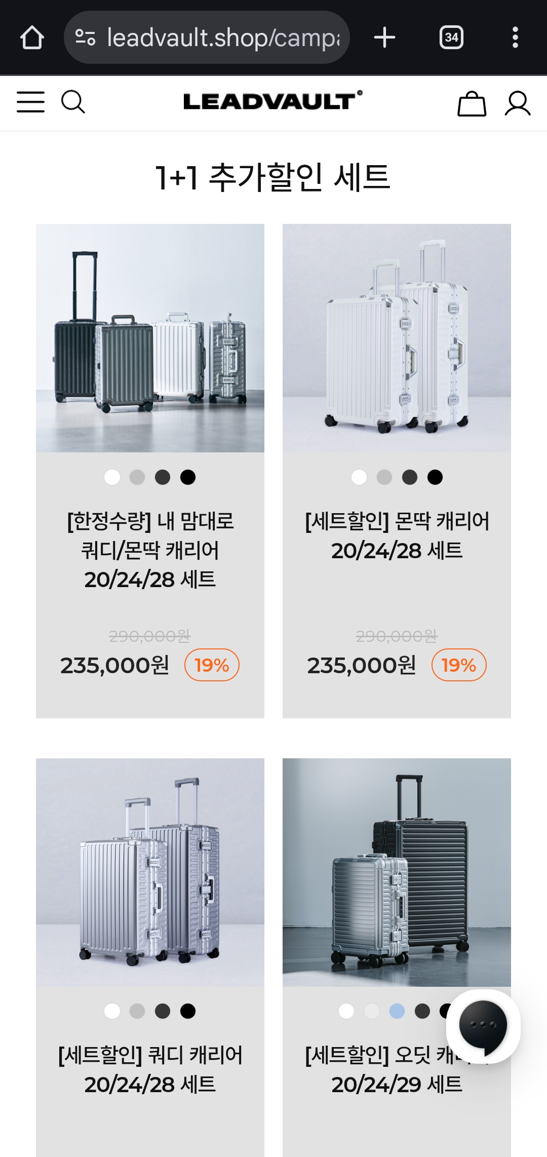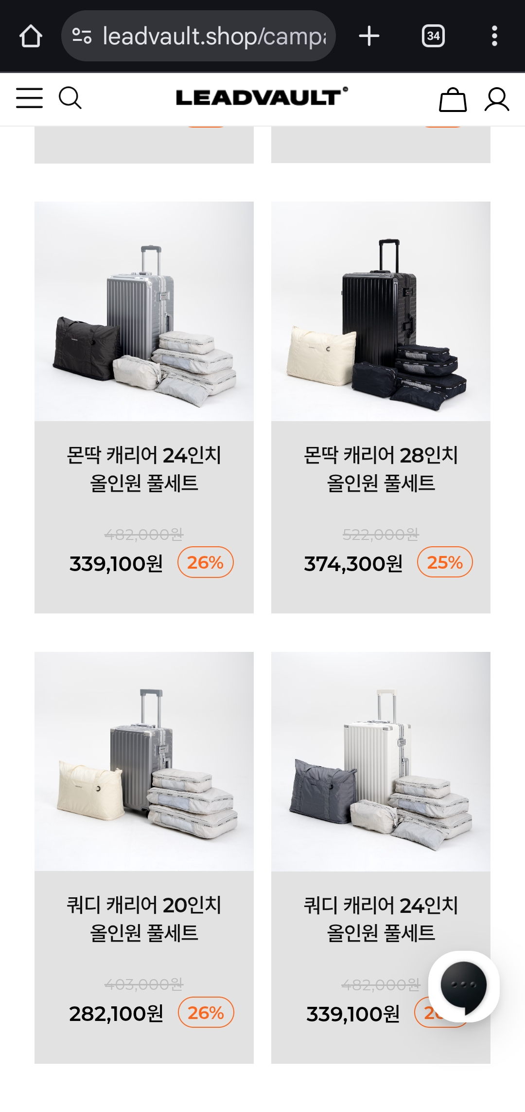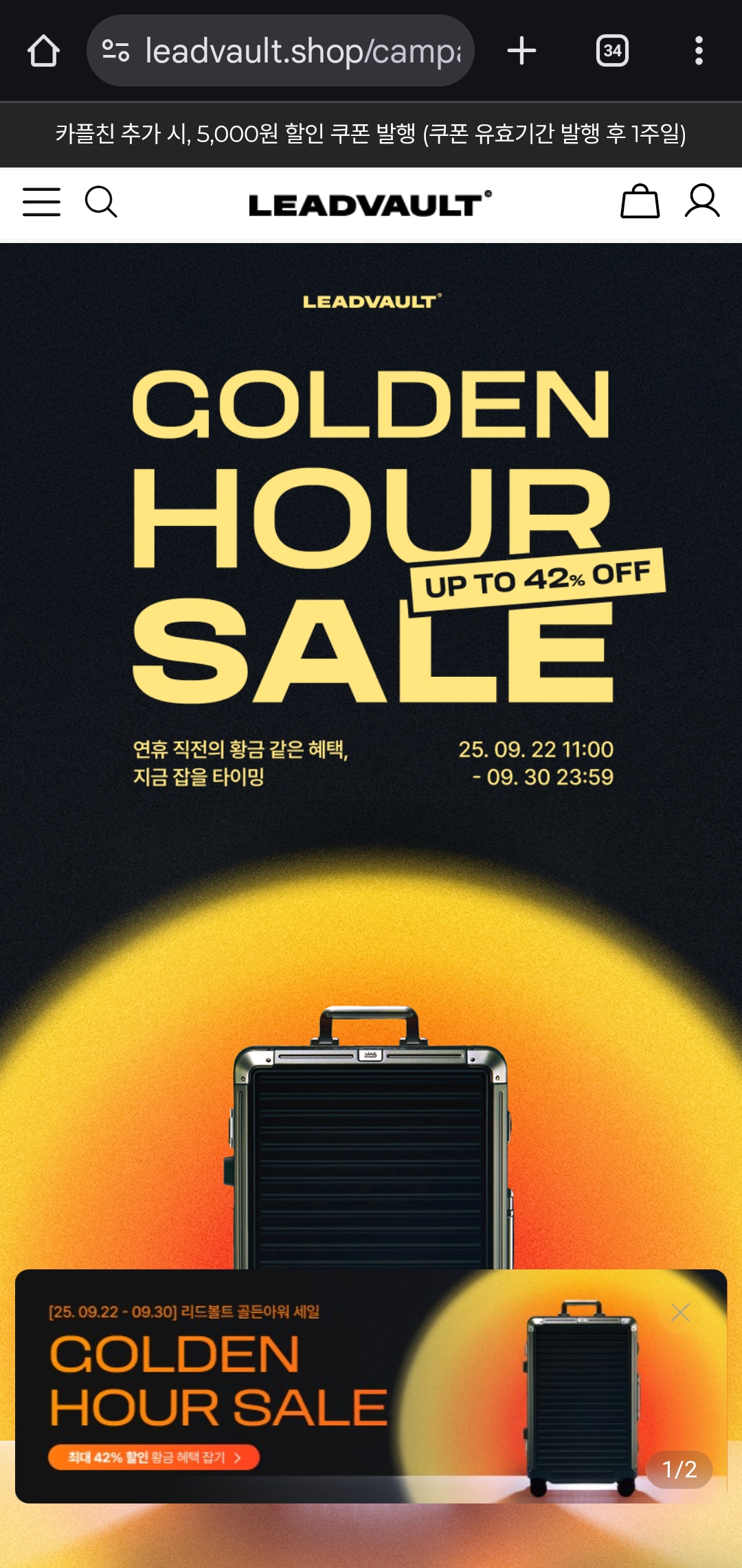 지금 **리드볼트(LeadVault)**에서 진행하는 골든아워 세일로 인기 여행 캐리어 제품을 최대 42% 할인된 가격에 만나볼 수 있습니다.