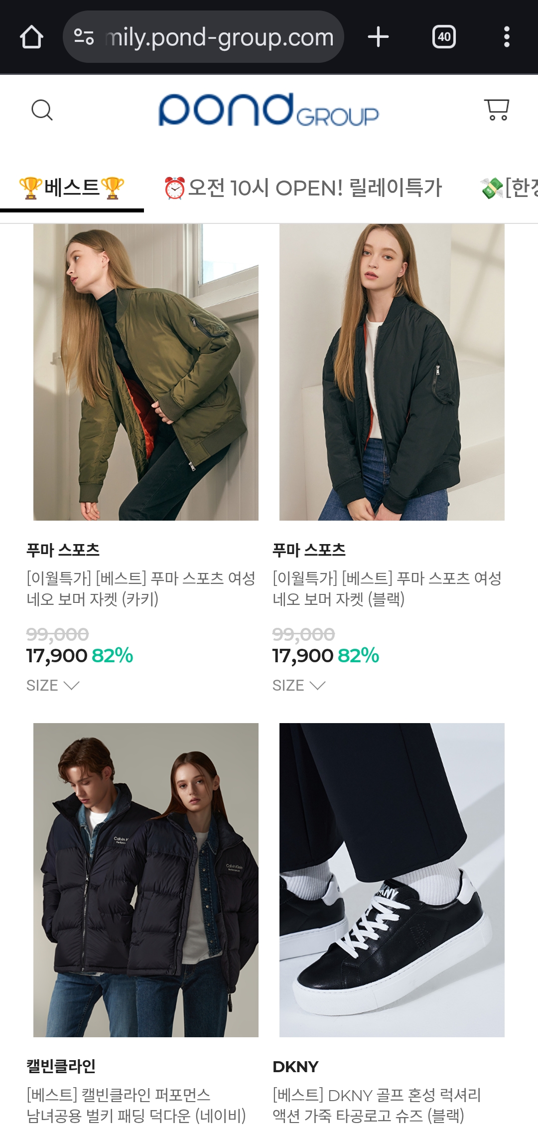 **폰드그룹(POND GROUP)**에서 캘빈클라인, DKNY, 퓨마, 카파 등 글로벌 브랜드 제품을 최대 80% 할인하는 패밀리세일을 진행합니다.