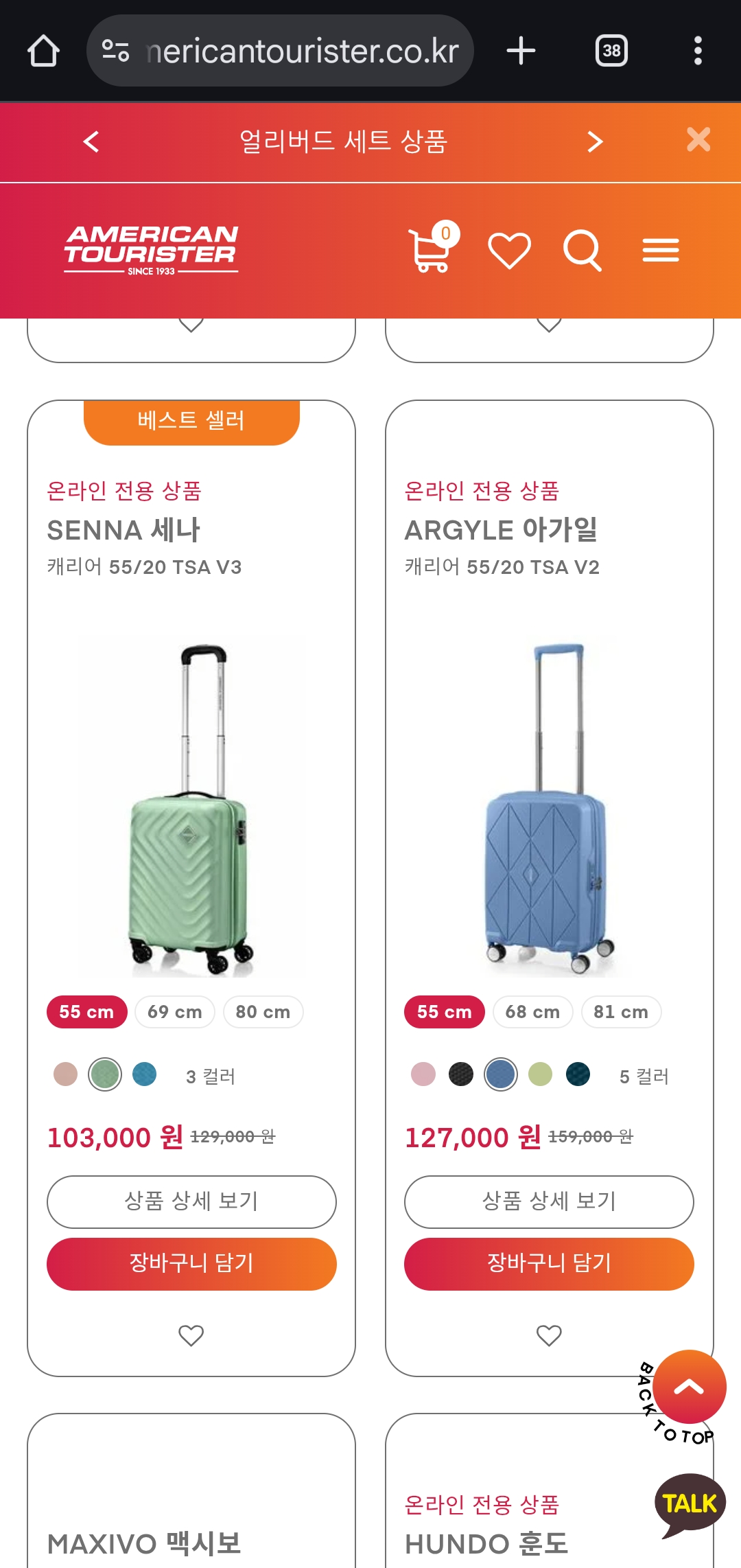 이번 세일에서는 다양한 사이즈와 디자인의 캐리어가 준비되어 있습니다.