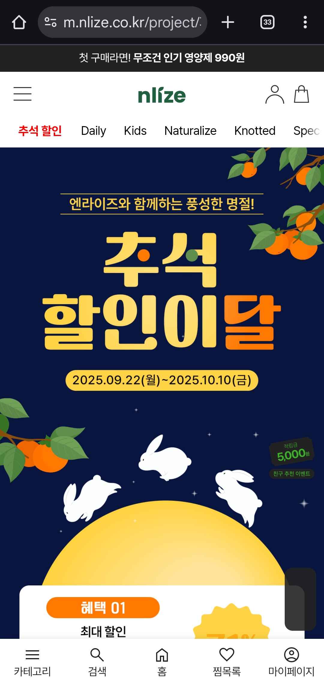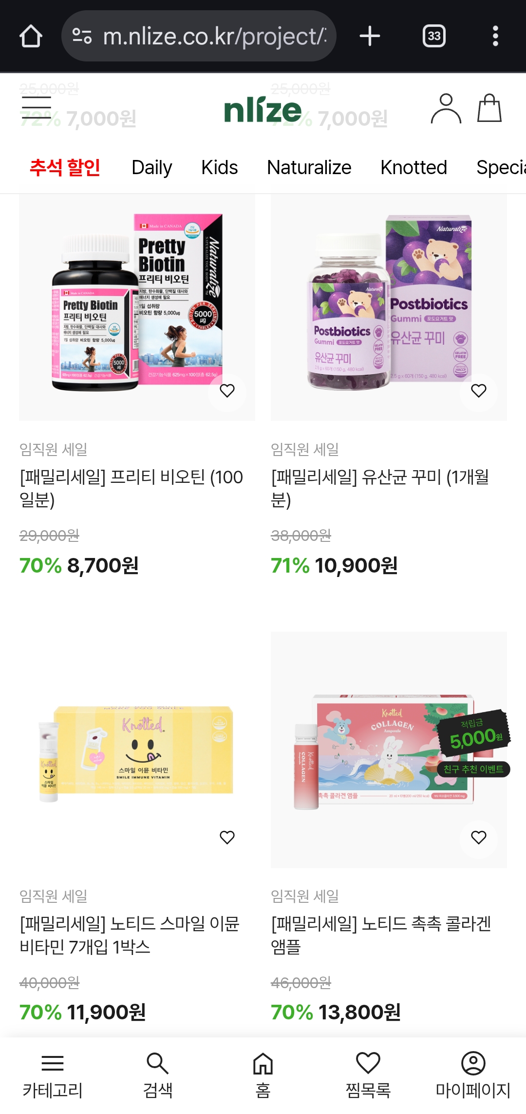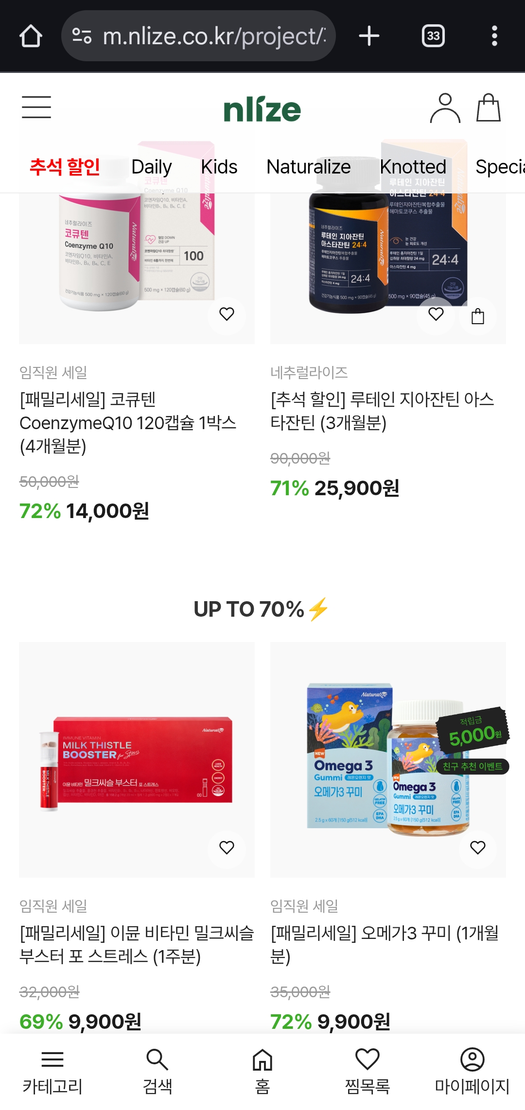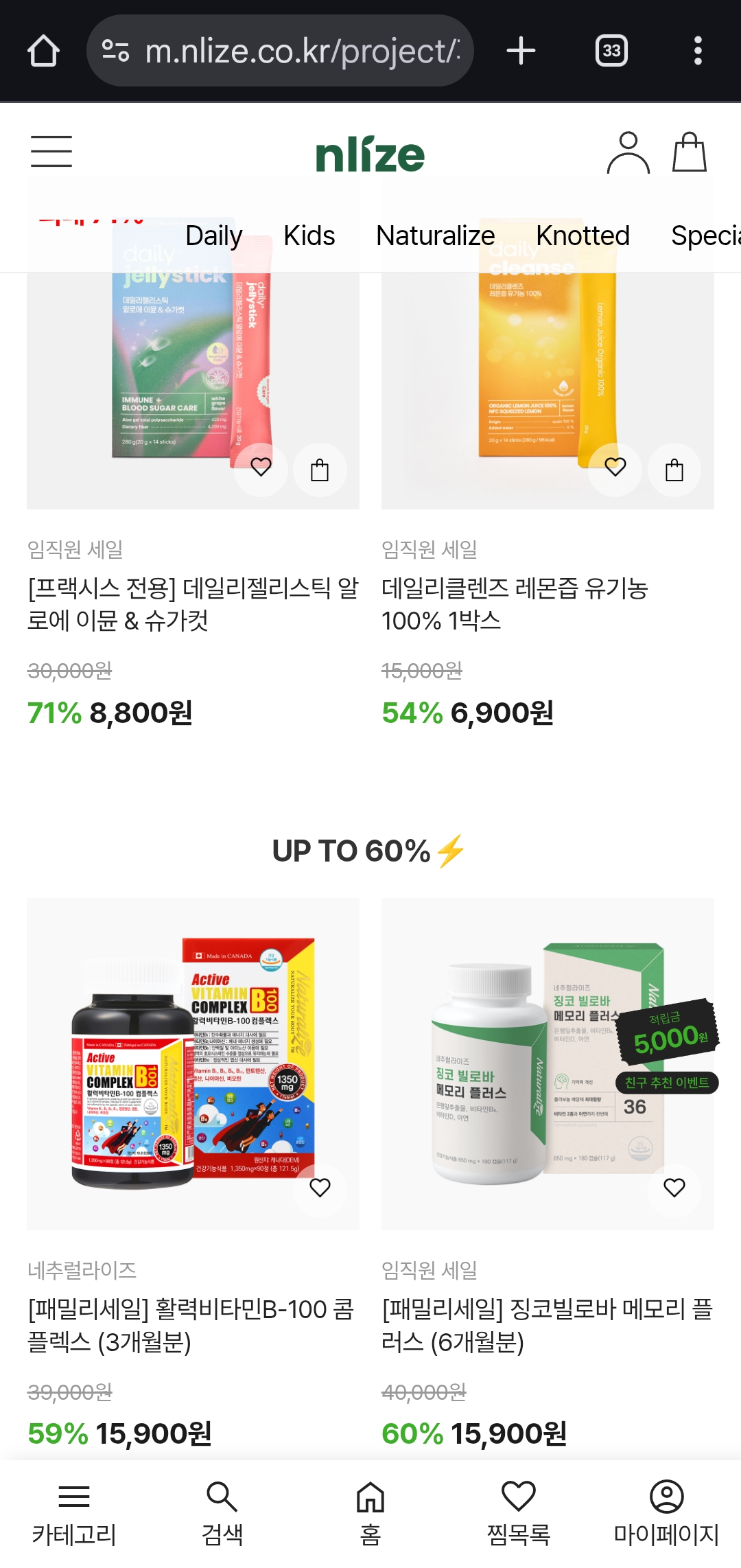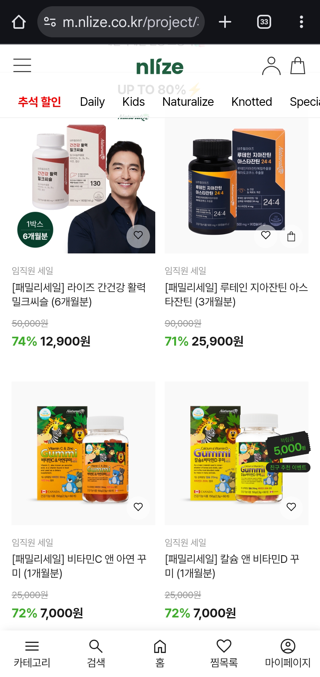 현재 **엔라이즈(NLIZE)**에서 건강기능식품 최대 80% 할인 혜택을 받을 수 있는 패밀리세일을 진행하고 있어요. 👏