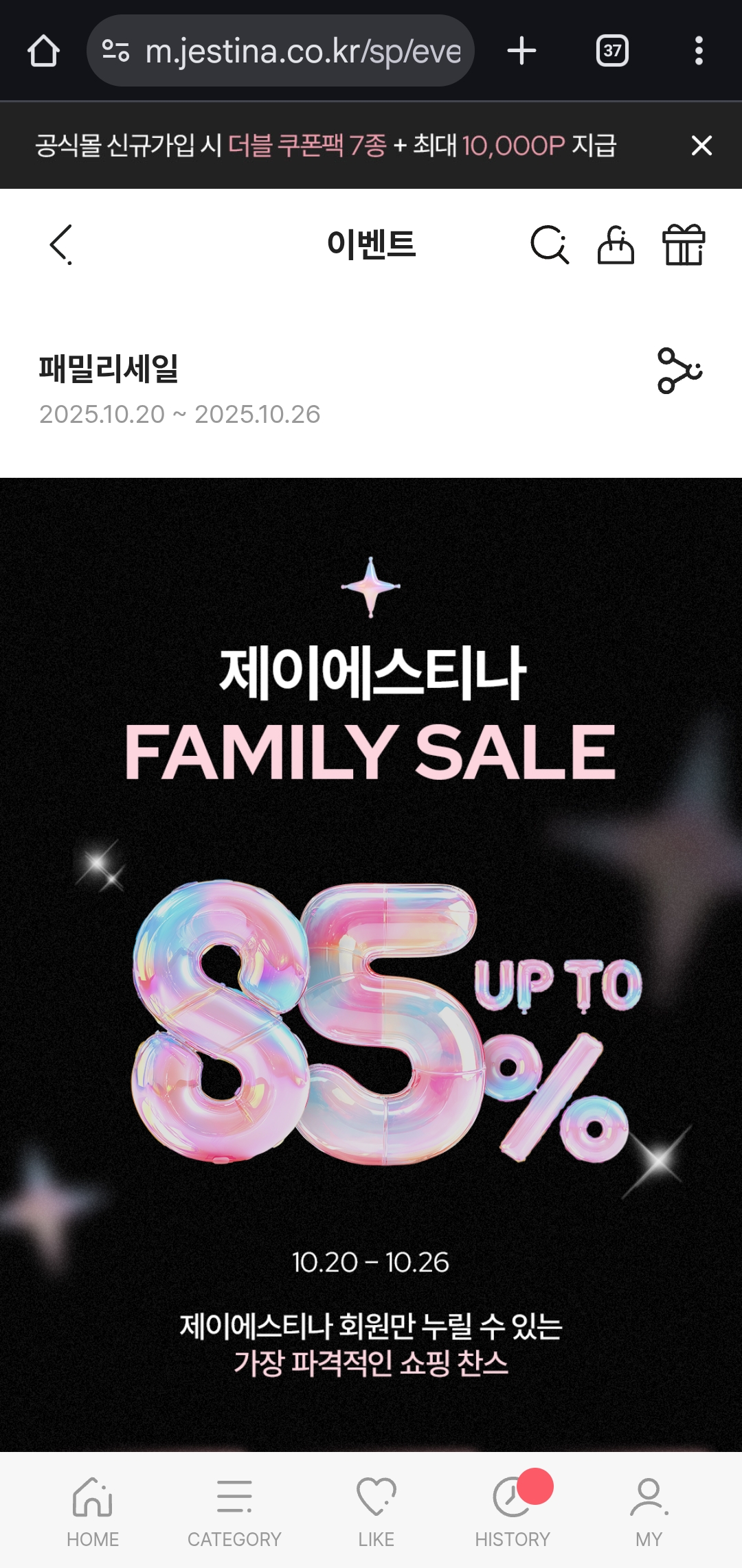 단 한 번뿐인 제이에스티나 공식몰 패밀리세일!