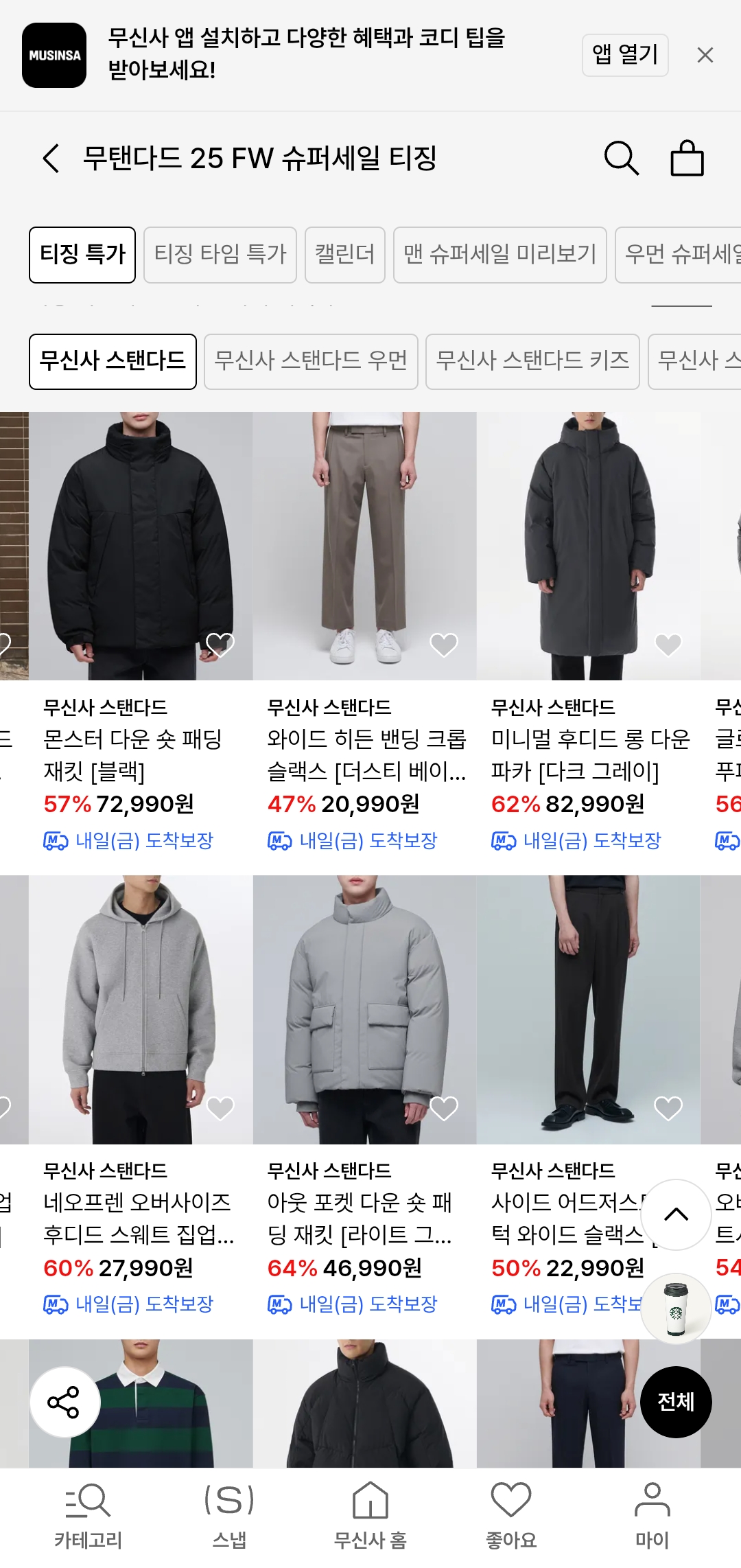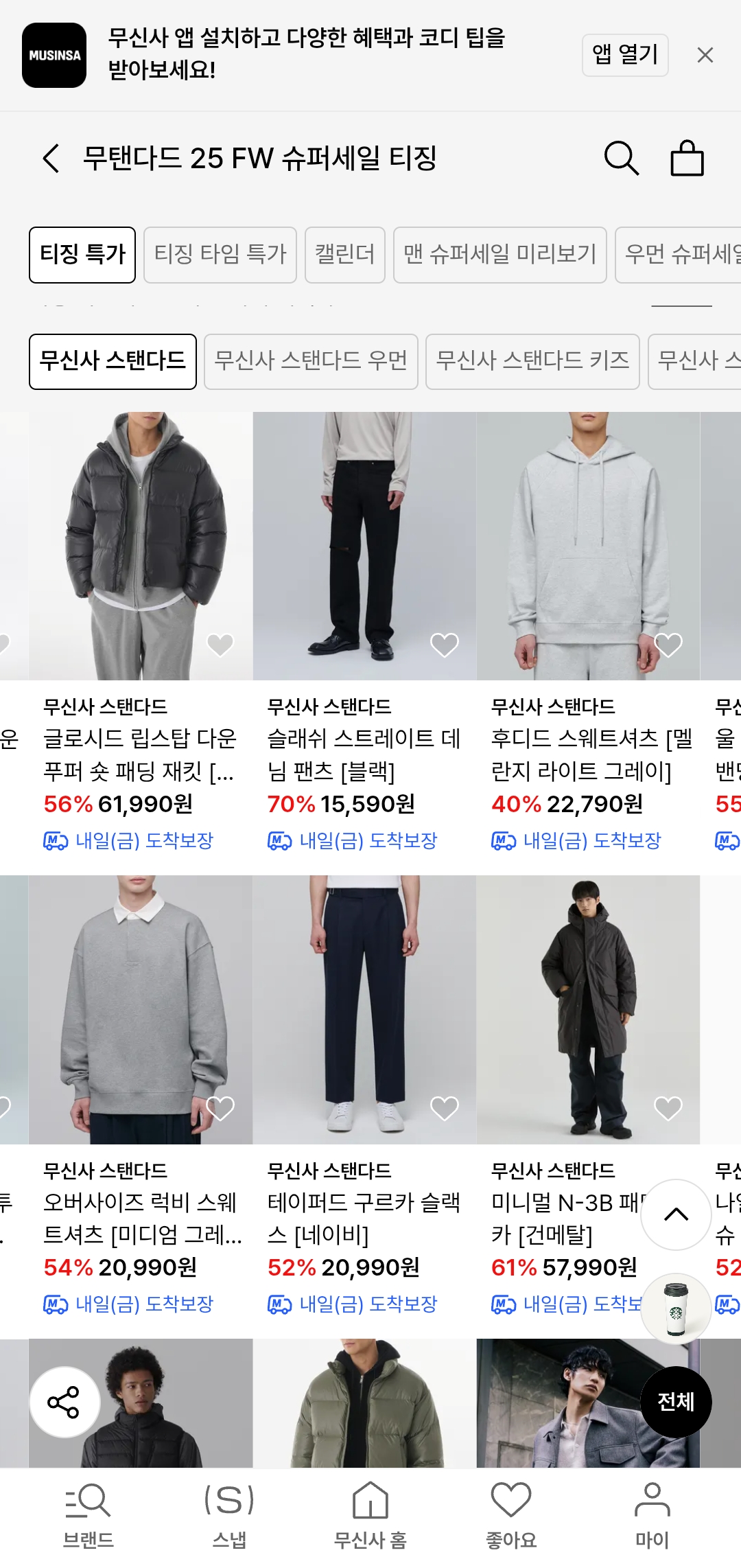 대상 브랜드: 무신사 스탠다드 (남성/여성/유니섹스 전 라인)