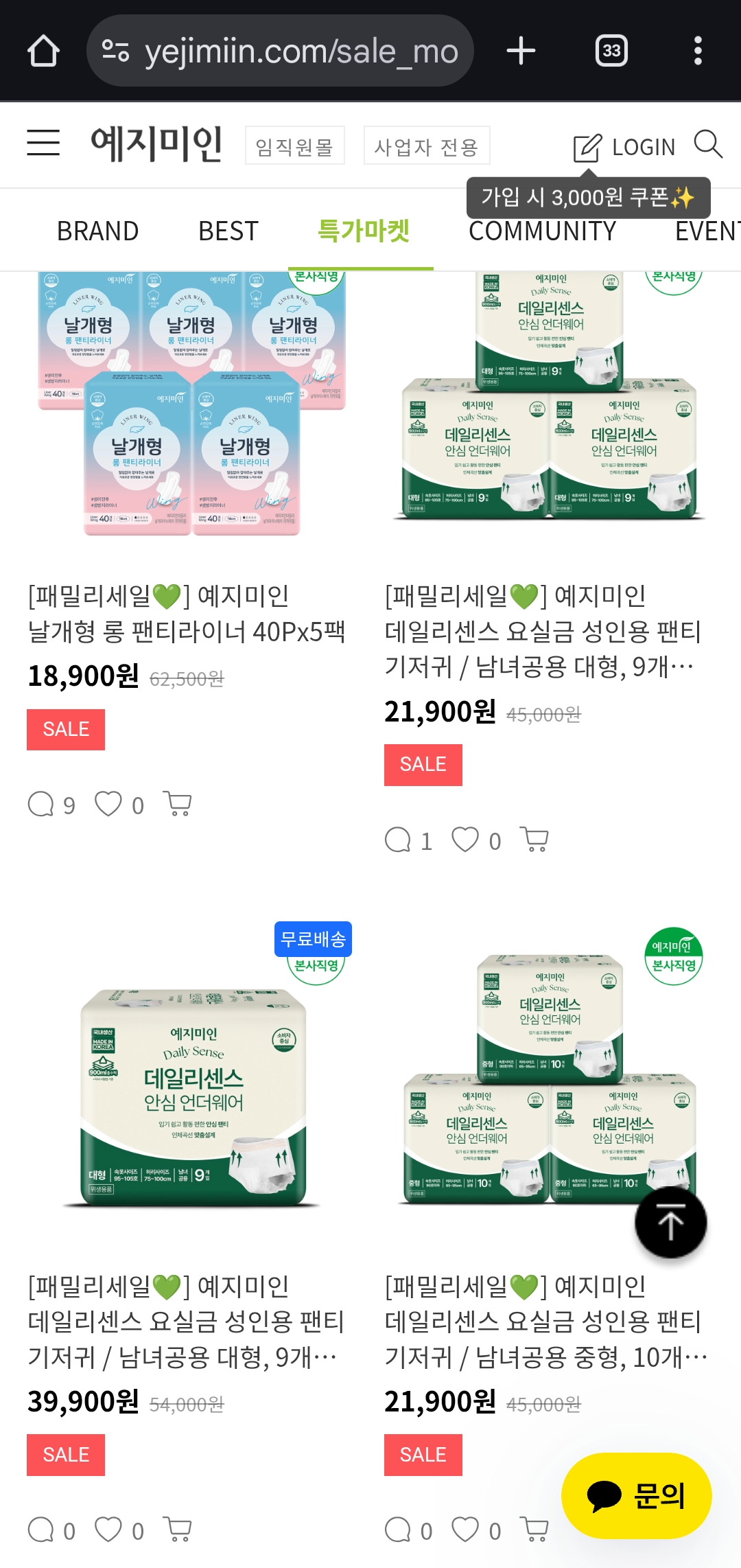 여성 위생용품 브랜드 예지미인이 깜짝 패밀리세일을 오픈했습니다!