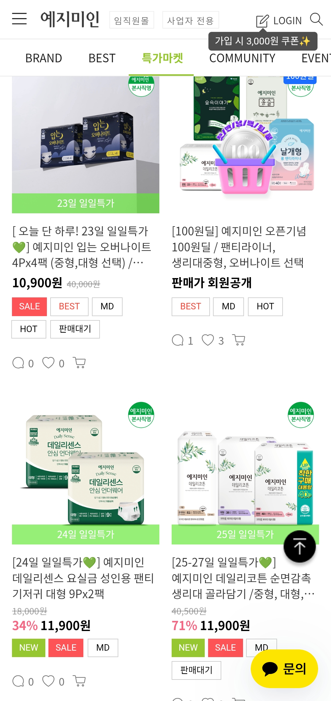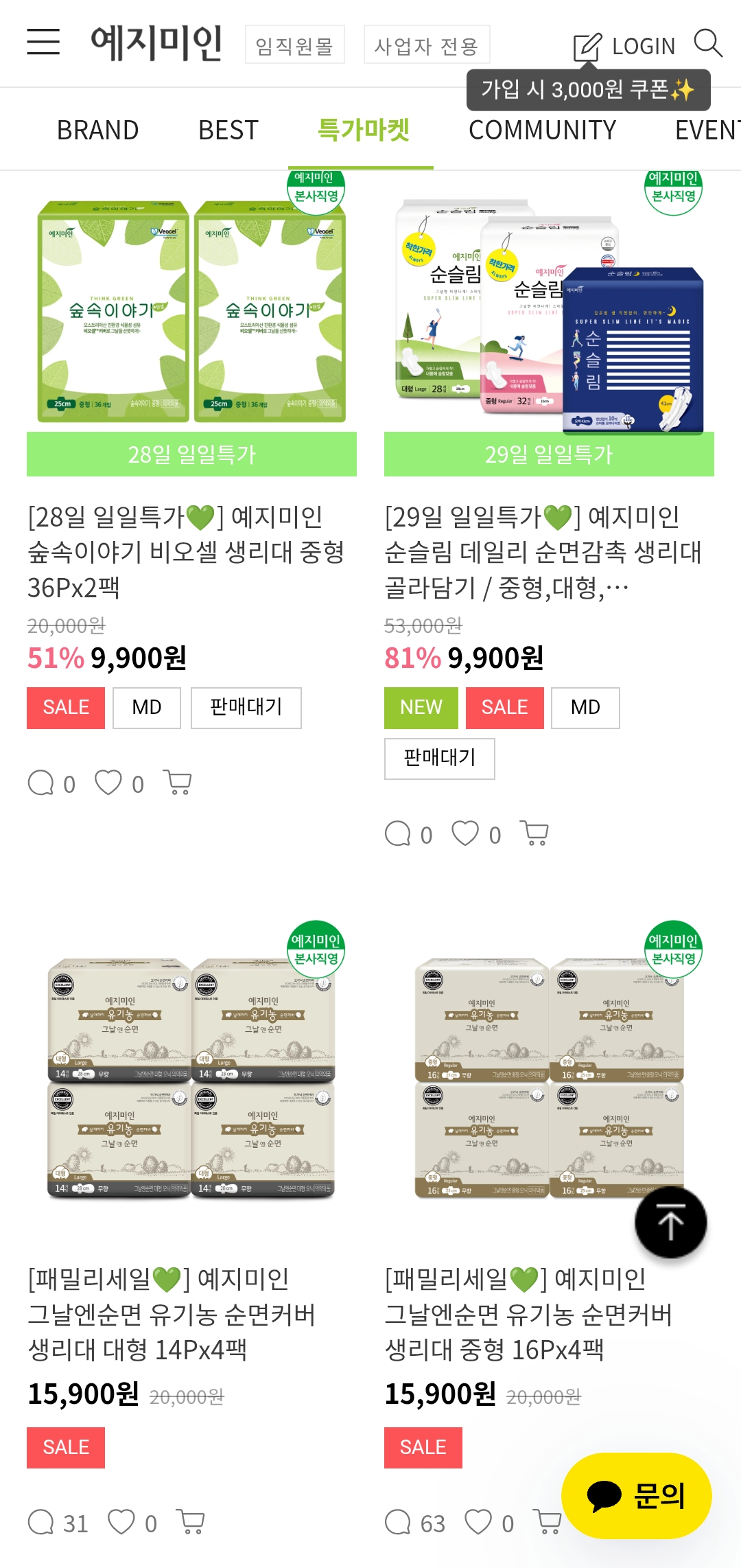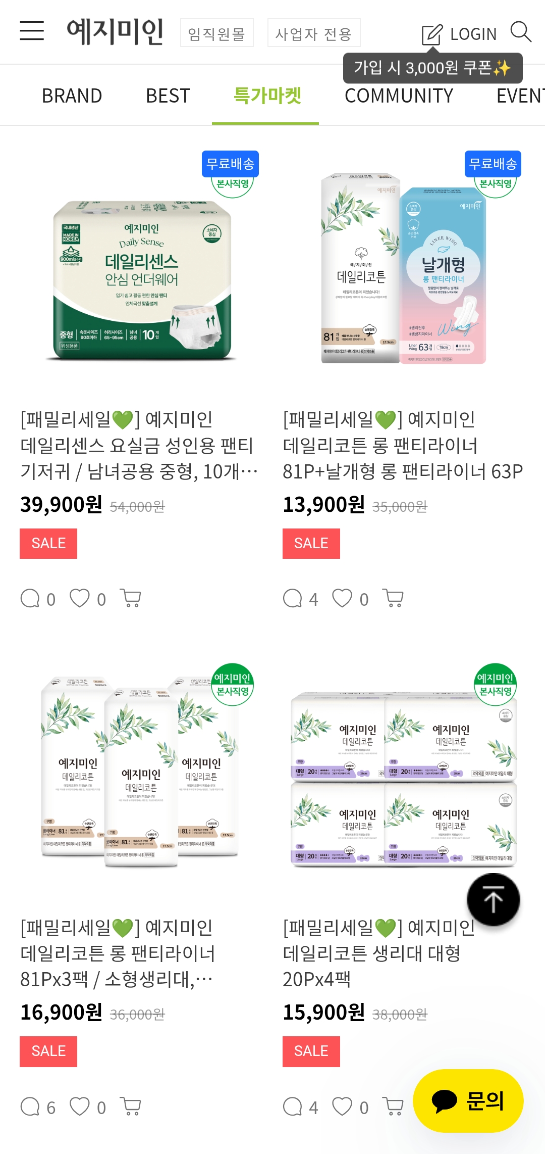 생리대, 팬티라이너, 여성청결제까지 최대 80% 할인 중인 예지미인 패밀리세일!