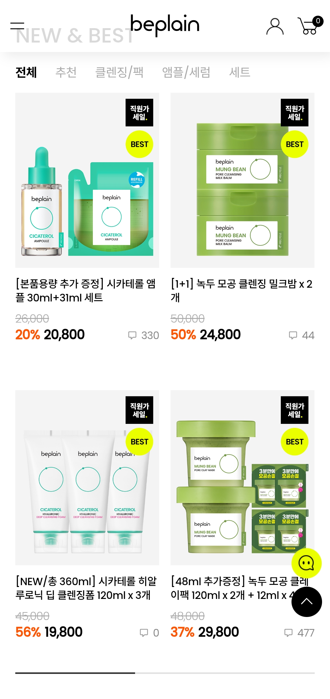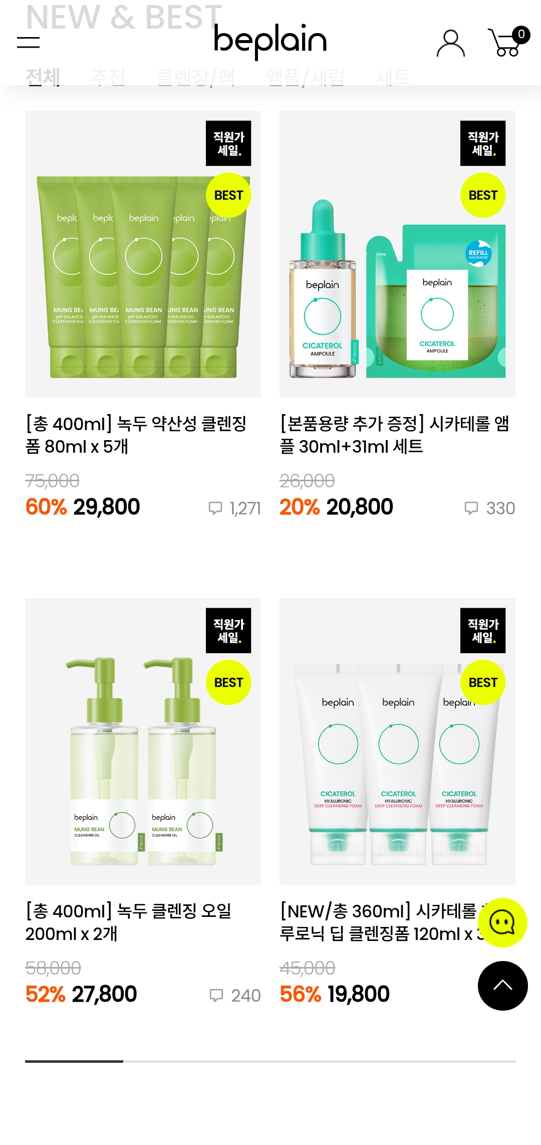 비플레인의 베스트셀러부터 클린 성분 신제품까지 모두 포함되어 있습니다.