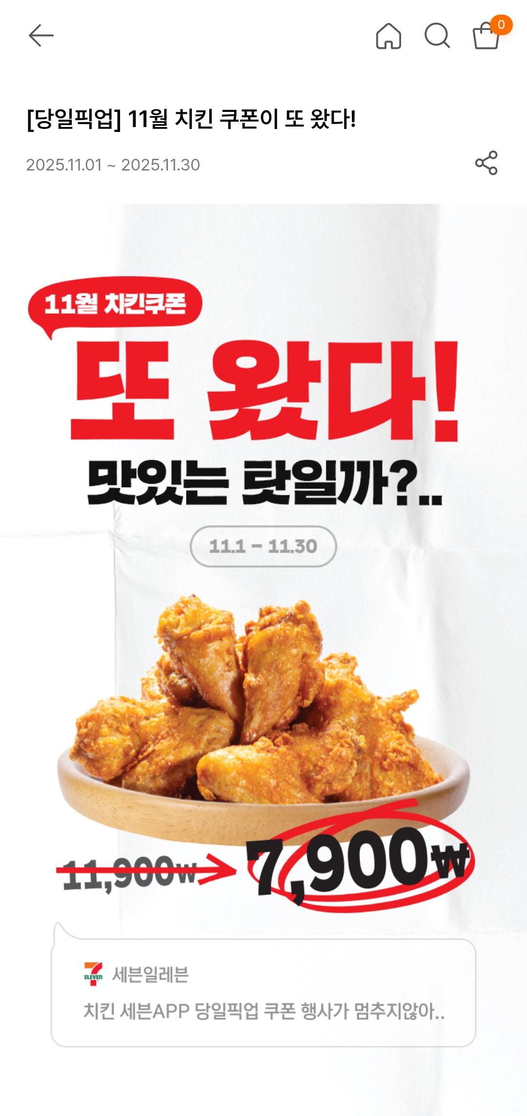 #세븐일레븐 #세븐일레븐치킨 #편의점치킨 #치킨쿠폰 #11월이벤트 #편의점할인 #당일픽업 #야식추천 #치킨할인 #편의점쿠폰 #가성비치킨