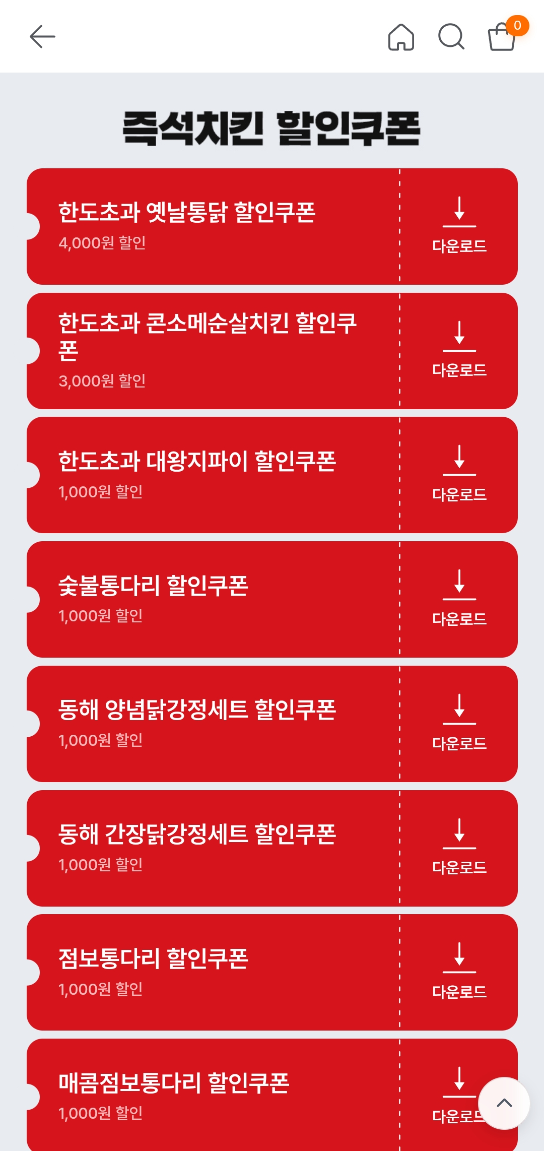 옛날통닭 쿠폰은 다운로드 당일 자정까지 유효