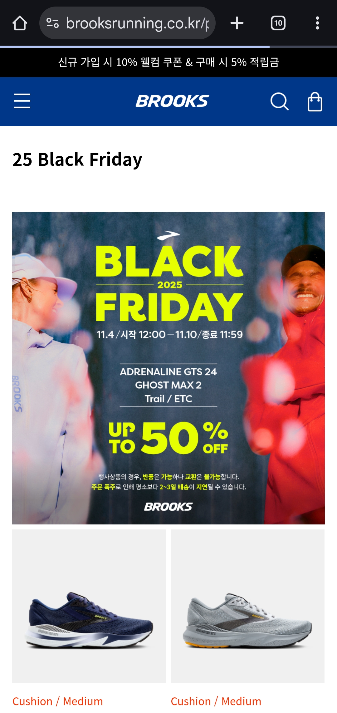 글로벌 러닝 브랜드 **브룩스(Brooks)**에서 블랙프라이데이 세일을 진행 중이에요 🎉